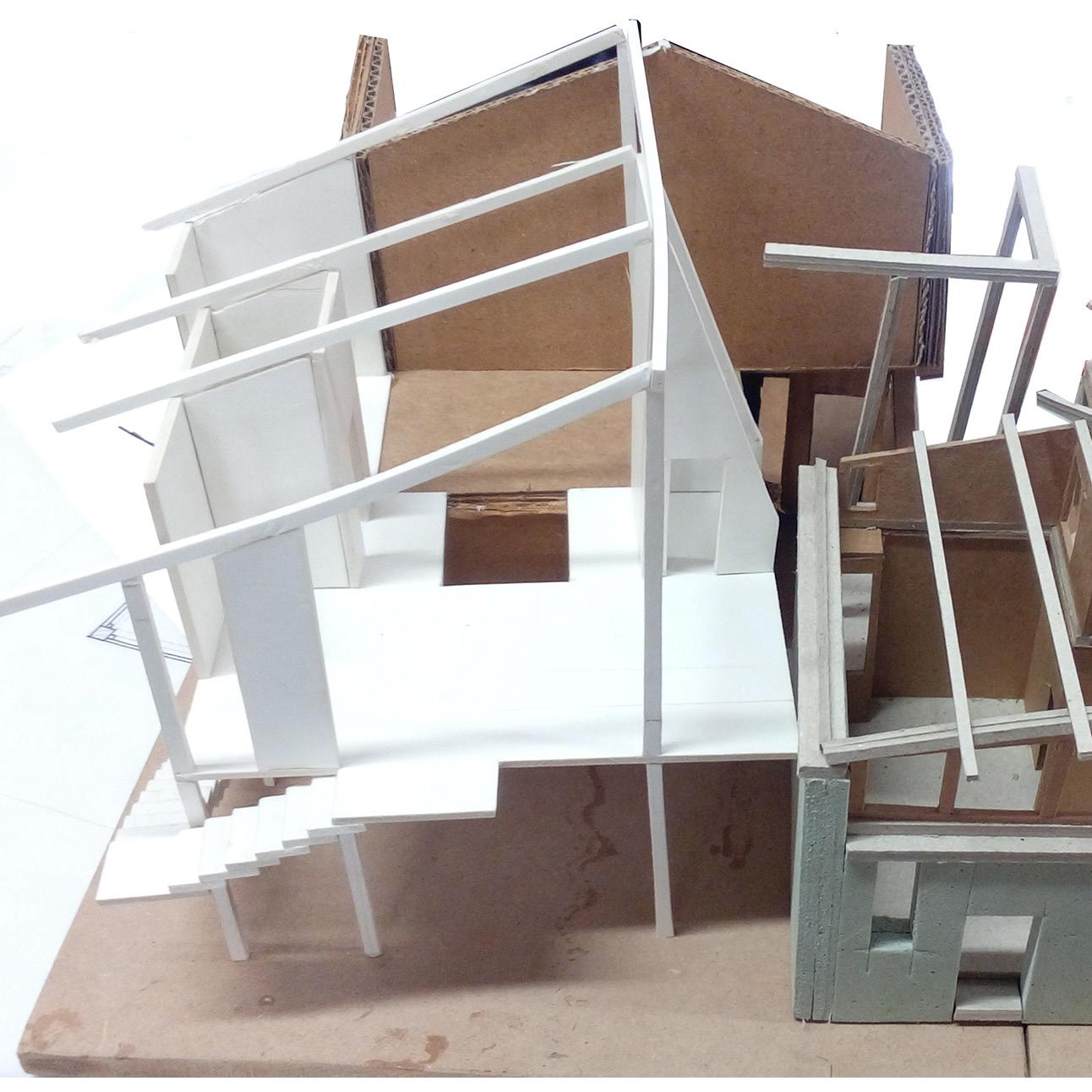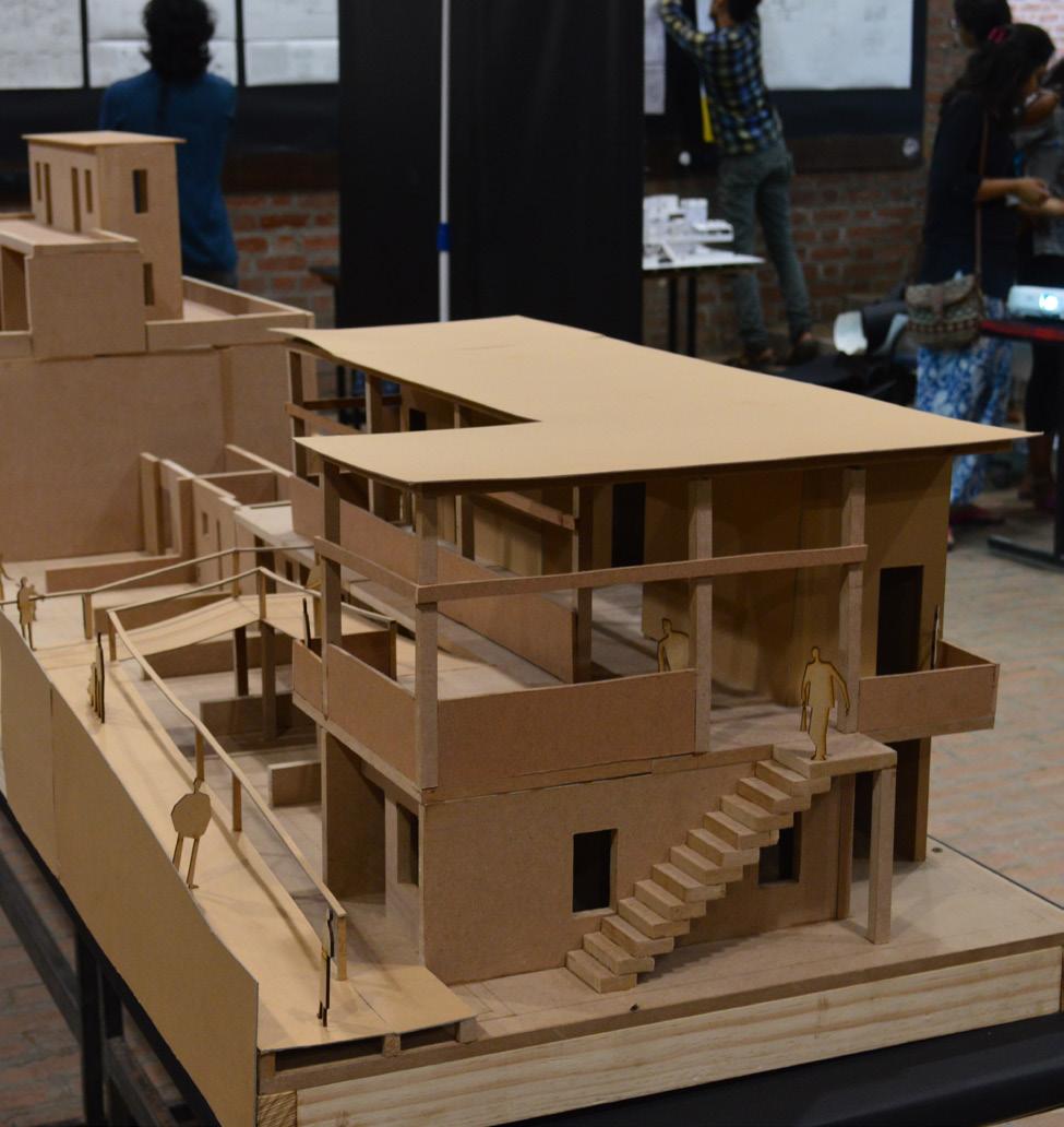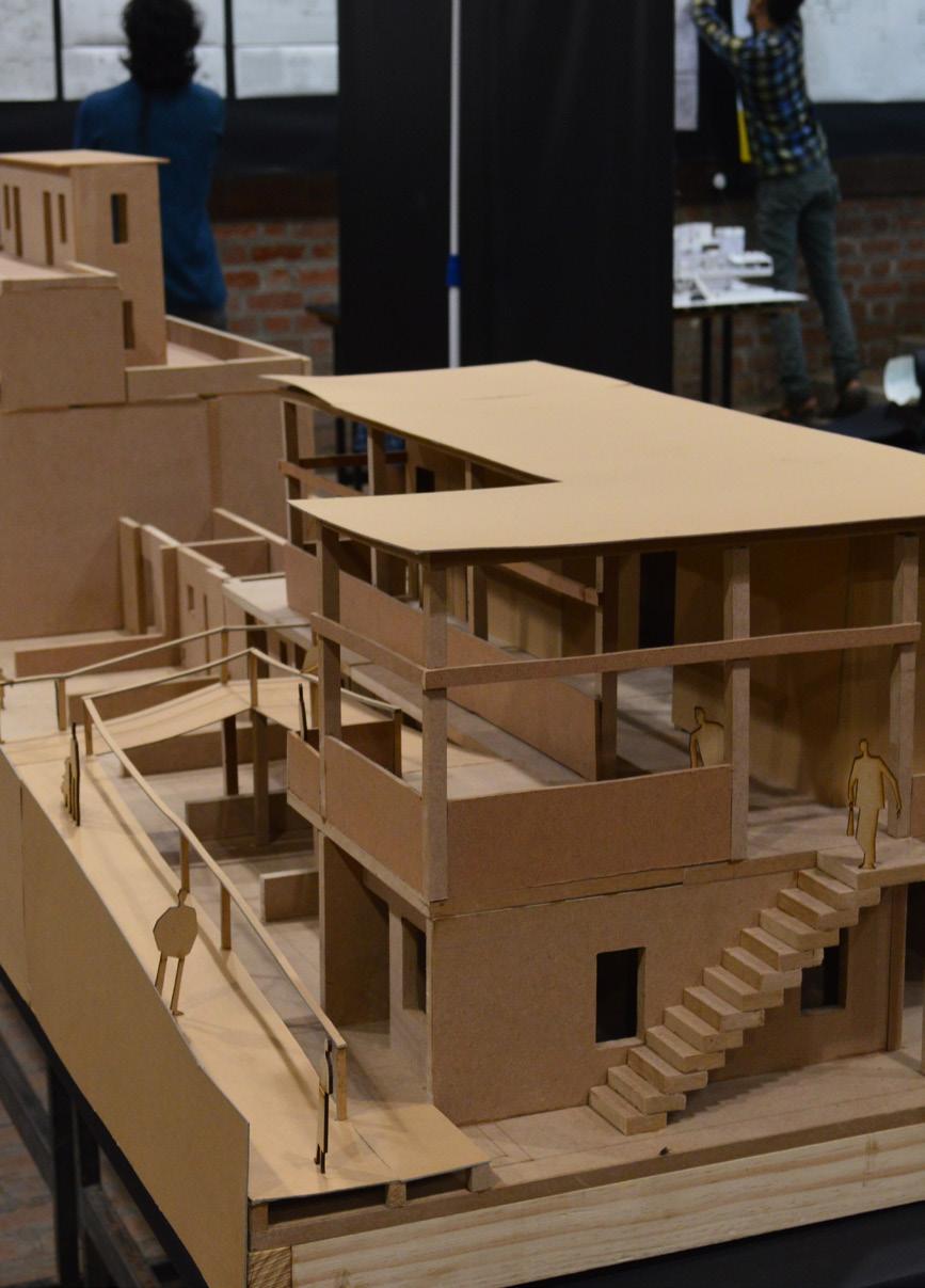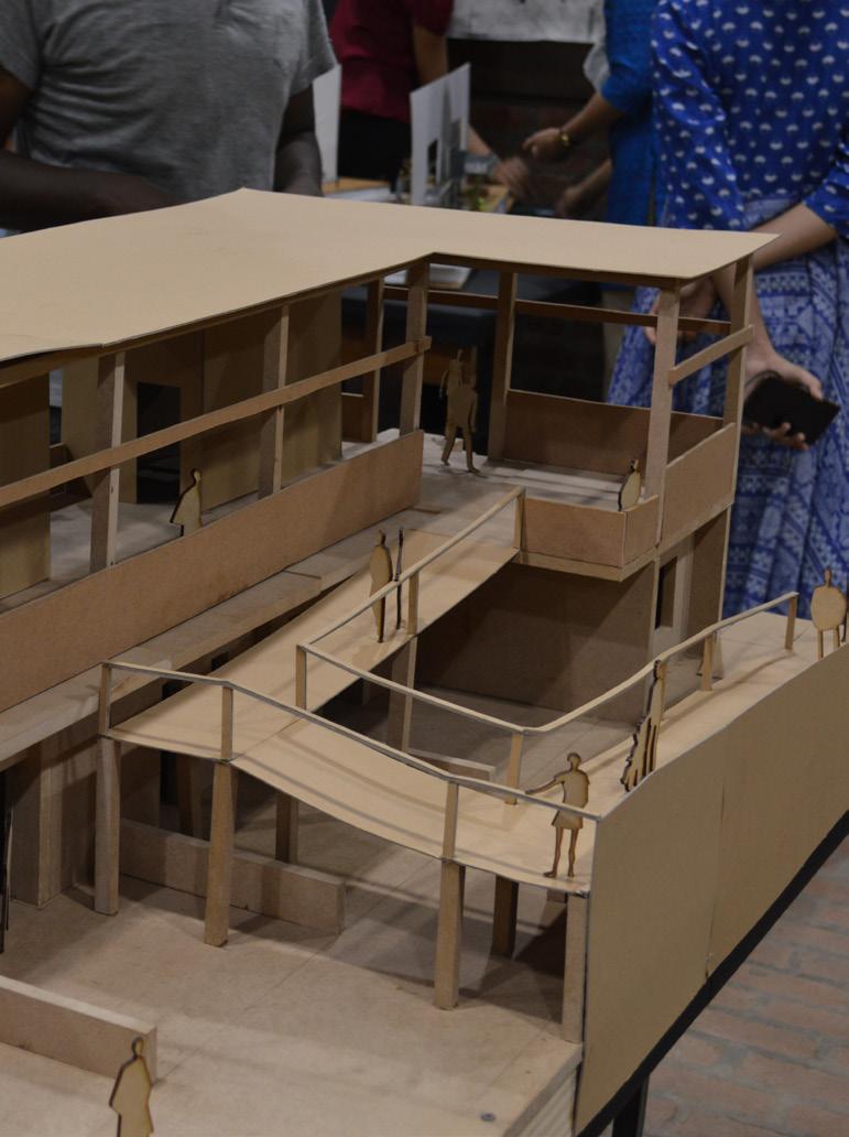 The design evolves through multiple iterations of the physical models. These models helped to understand the aspects of integration of design at site, collaborating with other students and their designs, material juxtapositions and inter-related scales and proportions