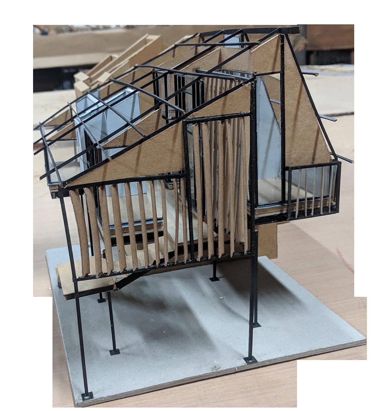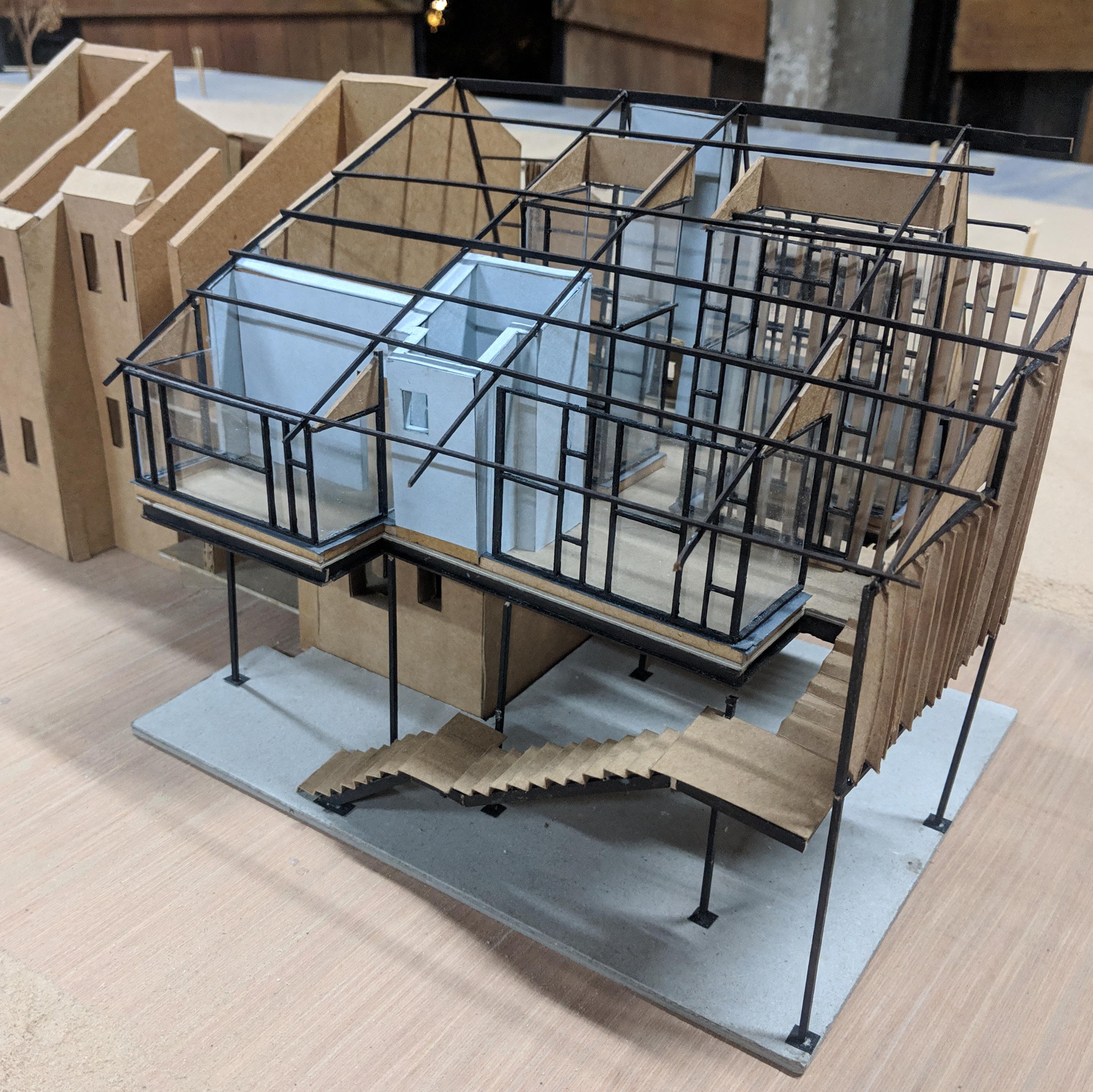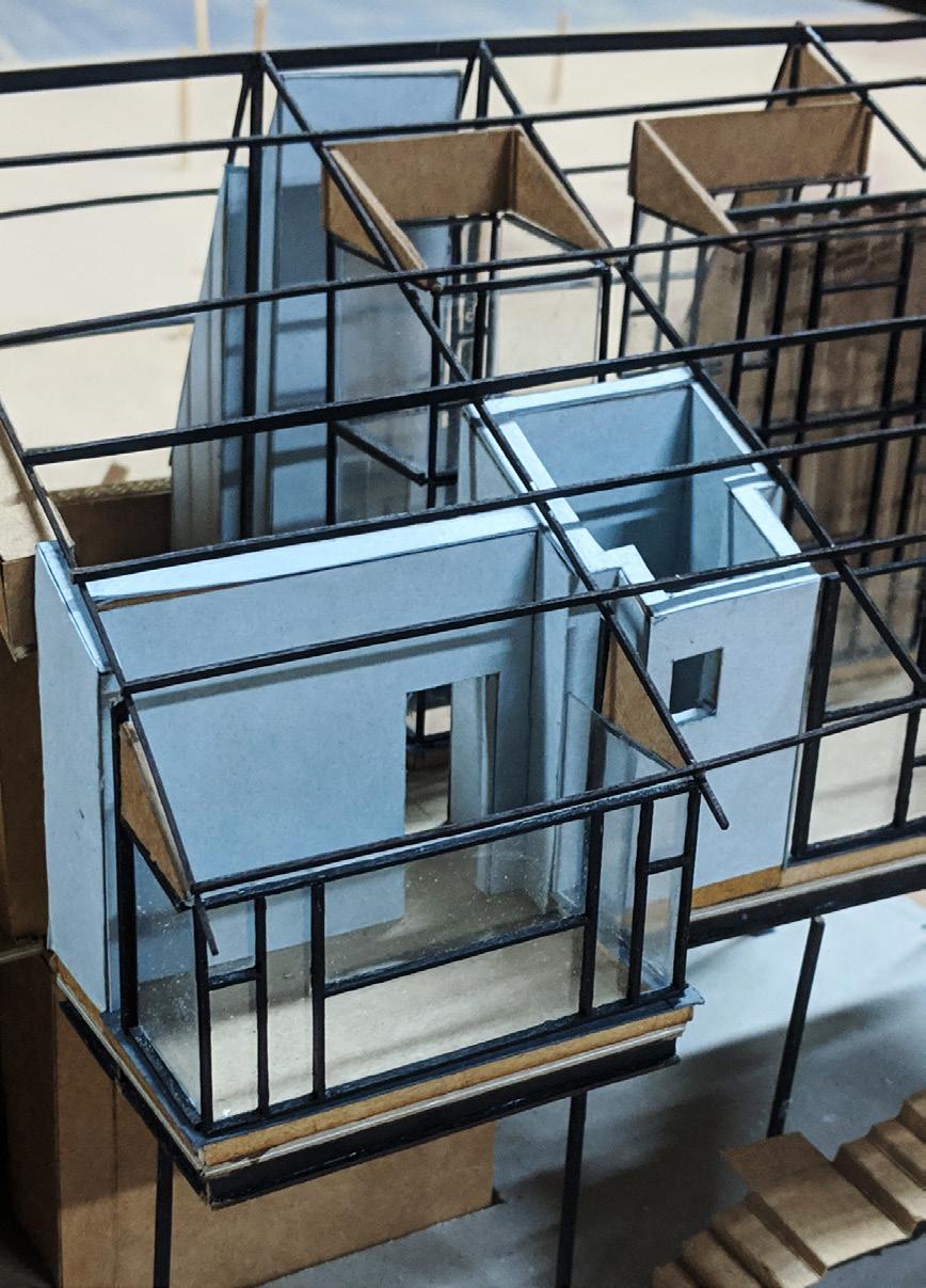 The design evolves through multiple iterations of the physical models. These models helped to understand the aspects of integration of design at site, collaborating with other students and their designs, material juxtapositions and inter-related scales and proportions