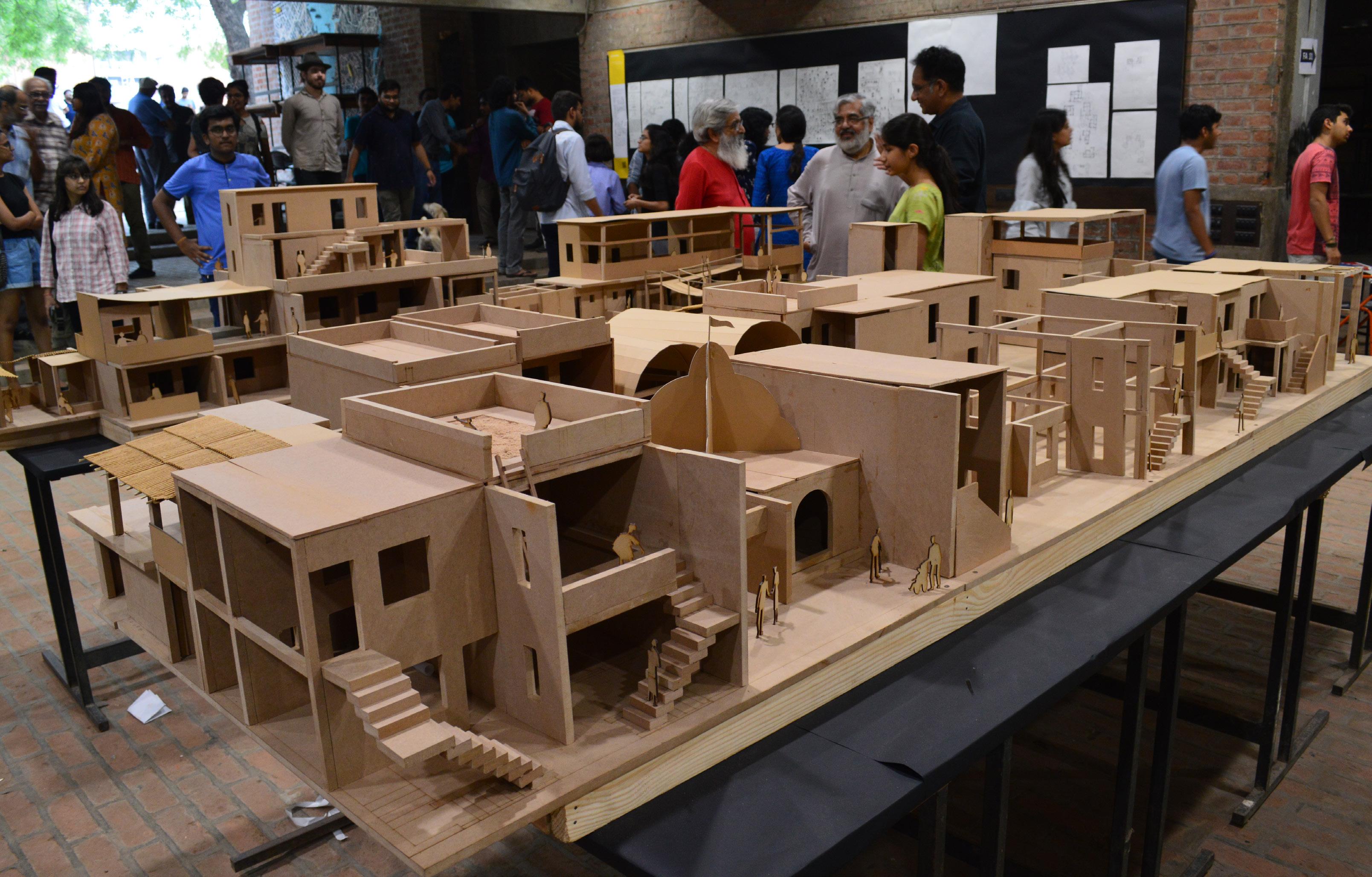 In this case, Aranya Housing by Doshi has been modified at certain places by our group and portrayed in the form of a 1:20 scale model.