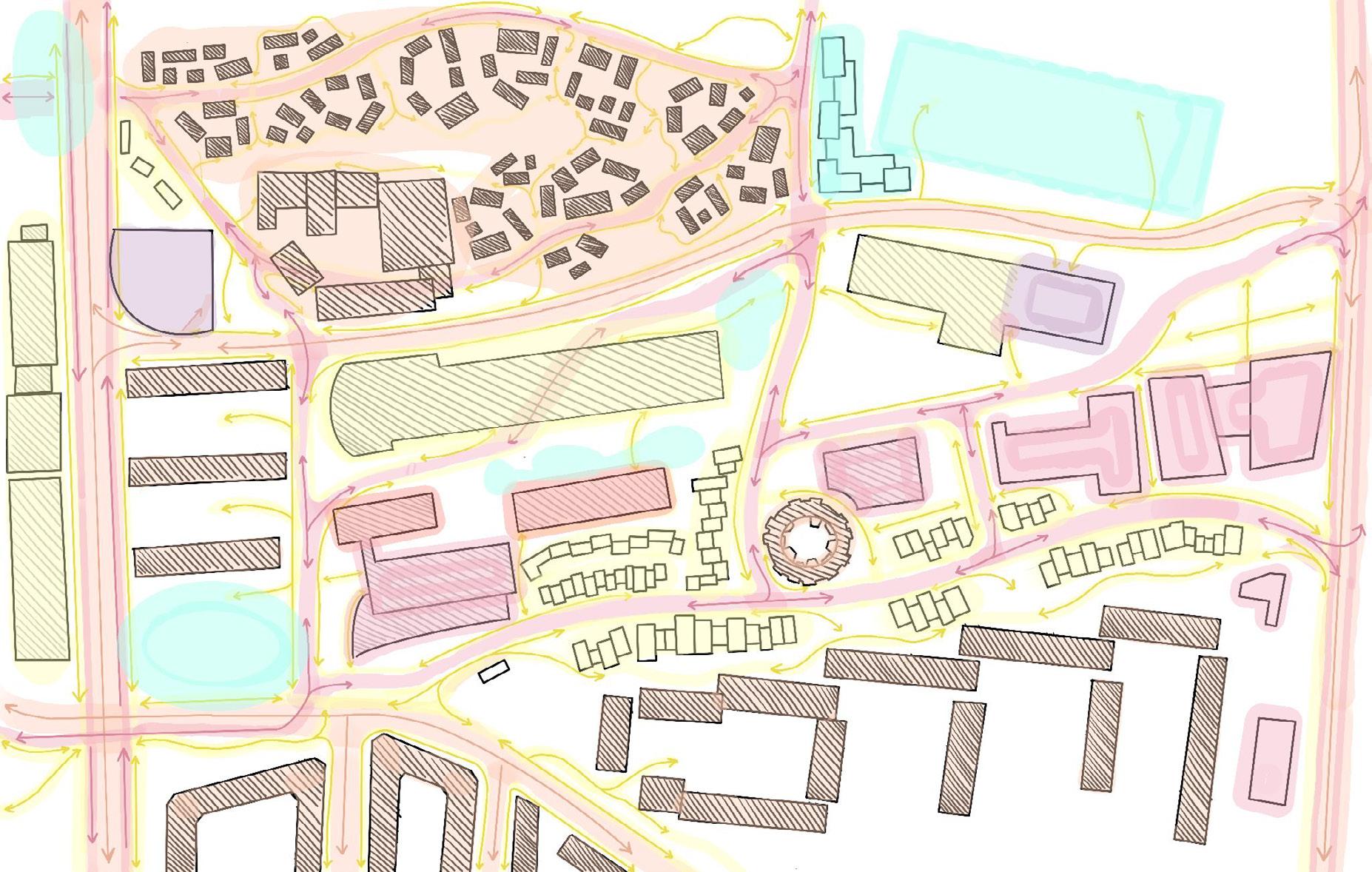 ByMosaik (Urban Mosaic in Danish) is a 1:200 scale sketch for an urban renewal master plan, drawn over 3 day period by myself and my partner. The urban scheme in Copenhagen’s Norrebro neighborhood was based on furthering connections within greater Copenhagen, establishing a model for car-free urban design, and creating a creative hub for art and street sport, goals developed after conducting extensive interviews and urban analysis. The project evidences the power of sketching, iterative deisgn, and community engagement.