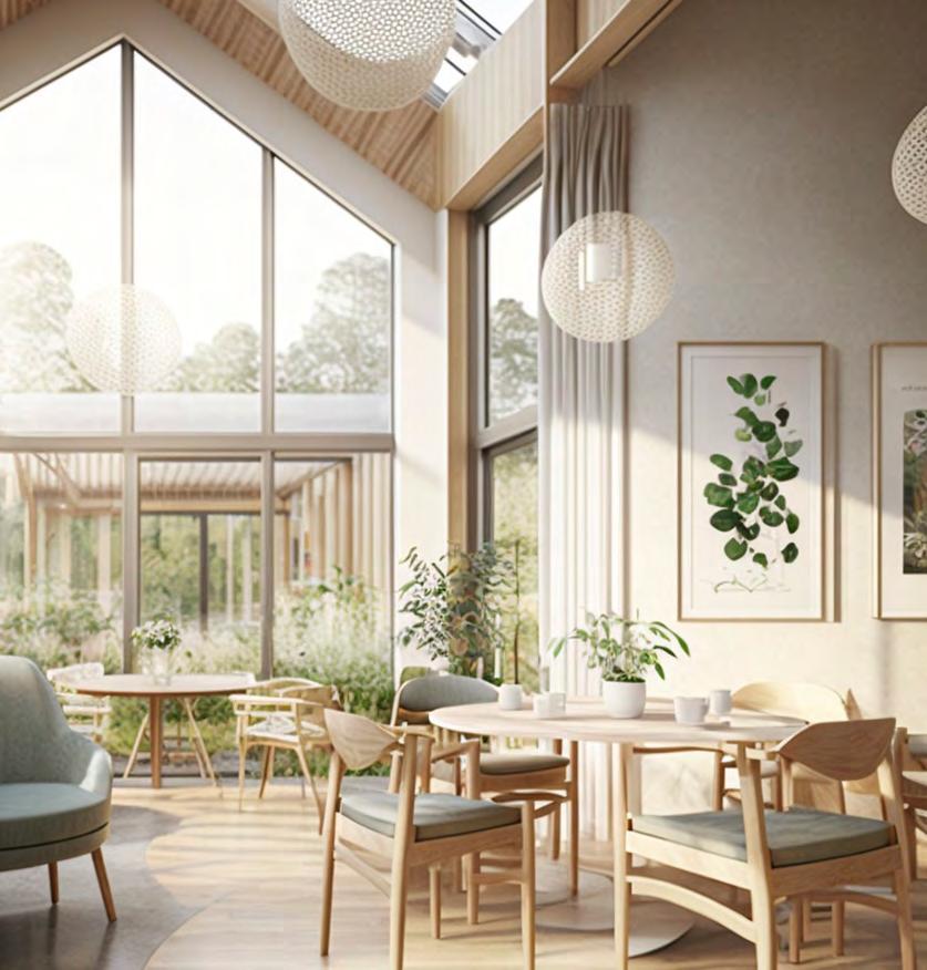 The building’s layout is intentionally designed to be unobstructed, creating a sense of openness and transparency that helps reduce anxiety. Additionally, it offers flexibility to provide adaptable spaces that promote relaxation, creativity, and gentle physical activity.