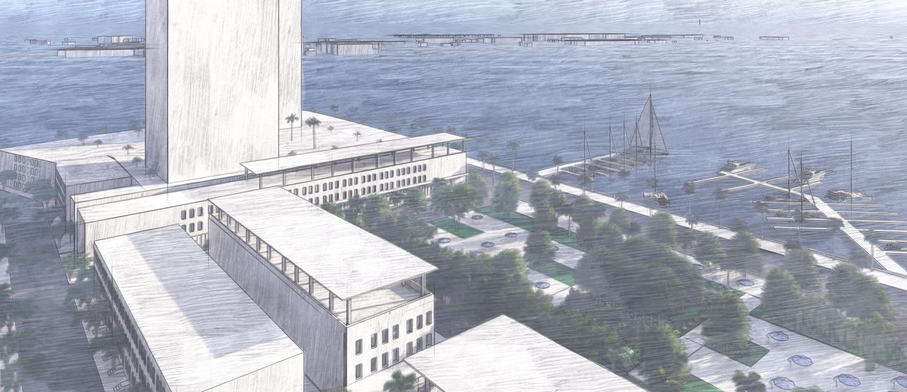 at ground level, native mangrove restoration and flood mitigation transform the site into a thriving ecosystem. above, advanced water treatment systems and open-air gardens in the sky reimagine towers as living structures that harmonize with nature.