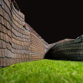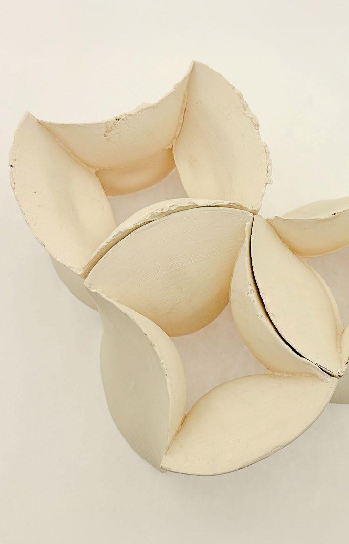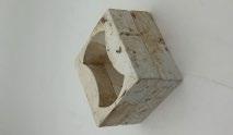 The six plaster cast molds are designed to interlock, allowing wet clay to be poured into them. Once the clay is set, the molds are disassembled, revealing the finished tile.