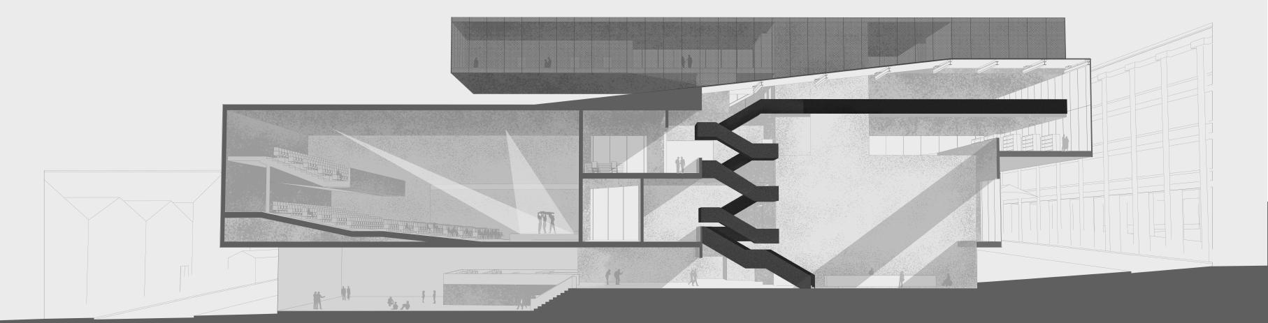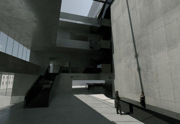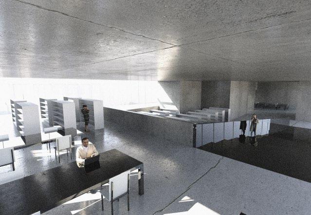 The Starless Mediatheque, a versatile media library, underwent a rigorous redesign resulting in a host of new features. Notably, the main lobby is now visible from the rooftop, adorned with a large skylight that floods the space with bright natural light, creating a warmer tone for the concrete structure. The continuous stairway in the main lobby connects all floors to the central atrium, enhancing accessibility. The upper area features private meeting rooms with breathtaking views of the bay and historic surroundings. A redesigned cantilever at the top integrates seamlessly with the building’s form, appearing to grow organically. The large concrete structure in the center houses elevators and bathrooms while providing essential structural support. Utilizing OKATECH curtain walls the media library comes together as a starless yet very bright place for knowledge and interaction.