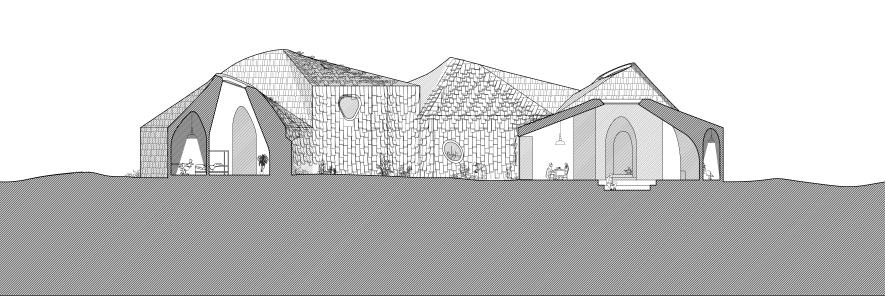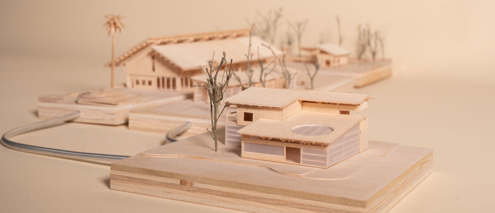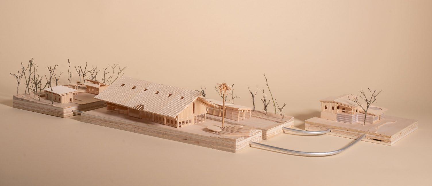The project features a variety of buildings with programs tailored to benefit the community. During our visit to Arroyo Grande, CA, we engaged with locals to understand what programs would support their needs while preserving the area’s historical character. The site includes a live-work home which exemplifies the value to family businesses, an outdoor kitchen to indulge in farm to table practices. Neighboring the kitchen, a Great Hall which houses an exhibition space and a kindergarten provides needed resources for the town. Lastly, the end holds cabins designed to generate revenue and introduce visitors to this vibrant community.