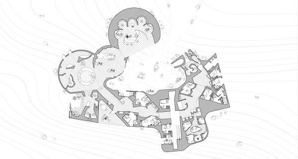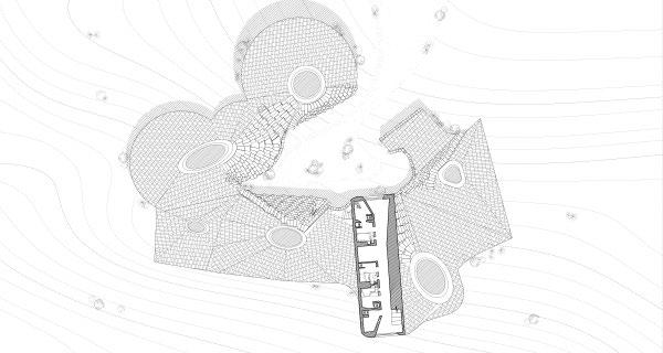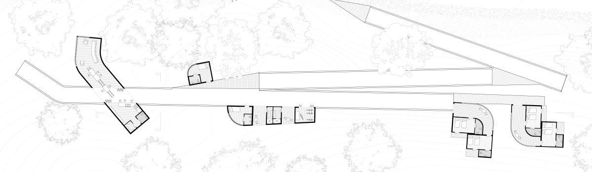 The Locomotion Hostel employs a loose-fit strategy, scattering its parts to highlight the spaces in between, emphasizing their importance. This approach harmonizes with the site, nestled in an open grassland habitat. The hostel’s design mimics the continuous pathways used by animals, with a tunnel-like circulation inside. Skylights in key areas resemble surface holes found in burrows. The structure’s materiality, featuring weathered wooden shingles, integrates it with the natural surroundings. Offering sleeping quarters, cooking facilities, meditation areas, and reception spaces, the hostel provides a tranquil setting for both productivity and relaxation.