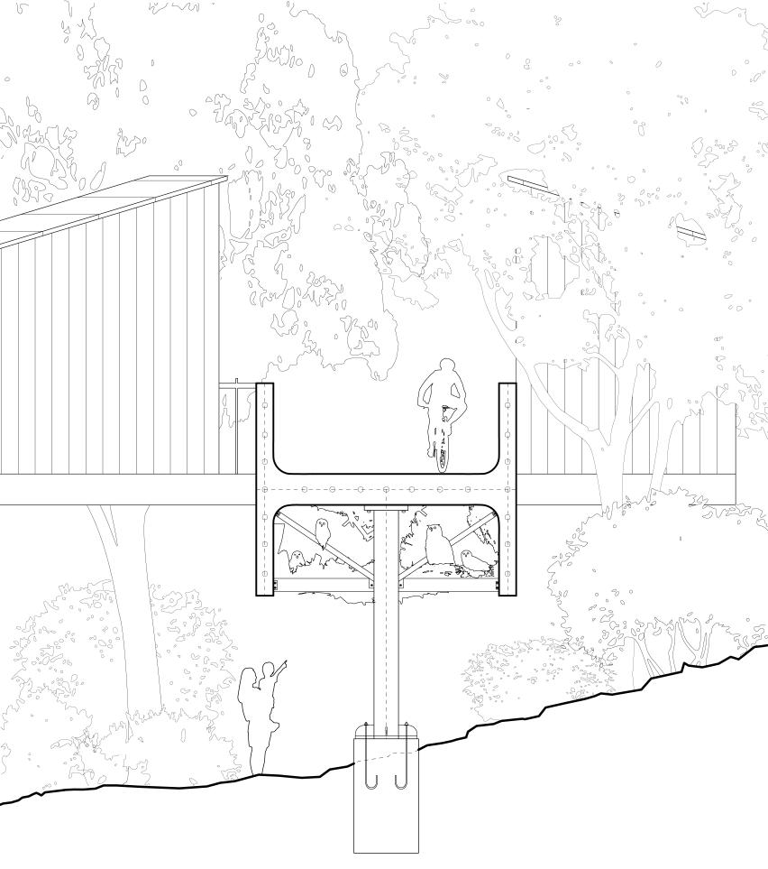 The Marin Headlands offers a serene escape from Bay Area bustle, boasting stunning ocean views and diverse wildlife. It’s a haven for hikers and bikers seeking respite from modern distractions. Nestled within this natural beauty lies the Rodeo Stgiforme Hostel, featuring elevated cabins overlooking lush foliage. The cabins, connected by a recycled highway girder pathway, blend seamlessly into the environment, fostering harmony with local critters. This design encourages visitors to immerse themselves in nature while enjoying panoramic vistas. In essence, it’s a sanctuary thatWexemplifies the harmonious coexistence of human structures and the environment, enriching the overall experience of the space whilst providing shelter for species such as the northern spotted owl.