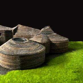 The tile-making process involved 3D-printed molds (left), which were used to create plaster casts (right) that served as the final molds for the tiles.