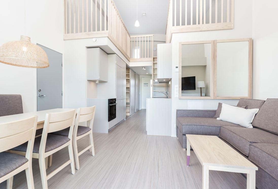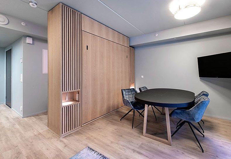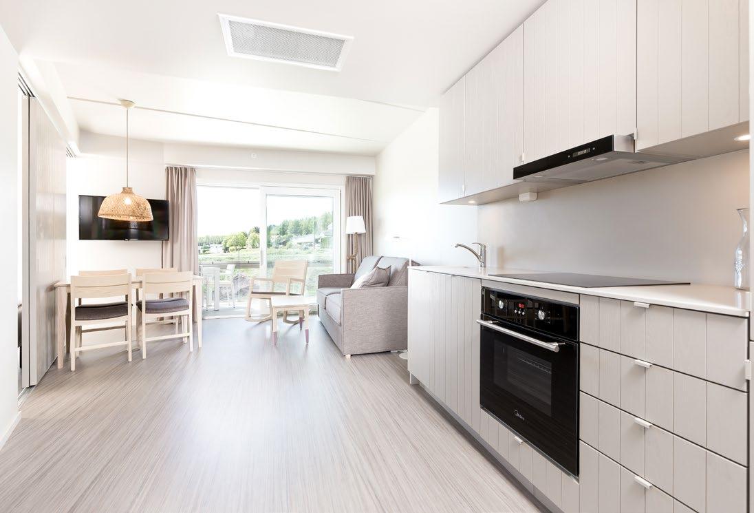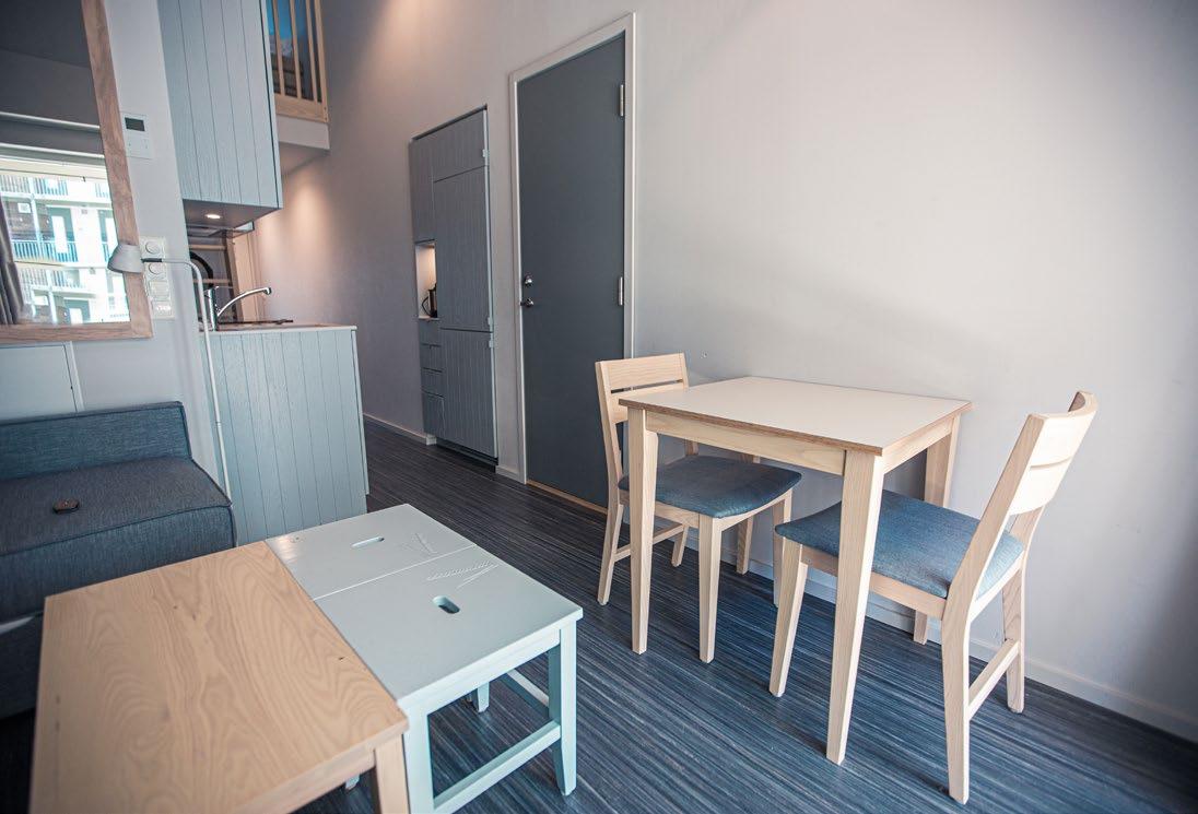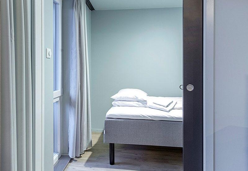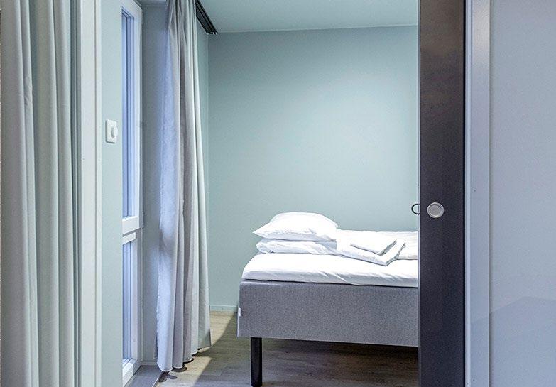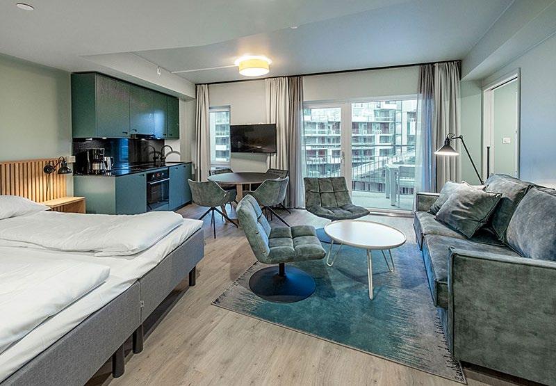 Suiten mit 36-47 m2 in den Langhäusern und Hochhäusern. Einige Suiten befinden sich im Erdgeschoss und einige sind behindertengerecht ausgestattet.
