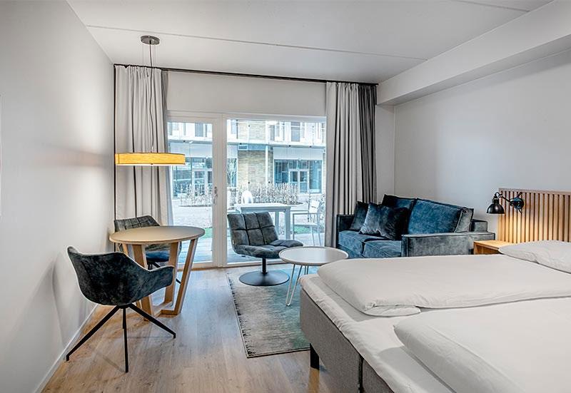 Hotelzimmer mit 37 m2 im Oslofjord Hotel im Erdgeschoss mit Eingang vom Innenkorridor.