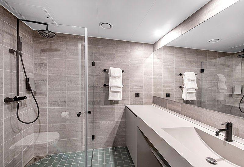 Hotelzimmer mit 37 m2 im Oslofjord Hotel, mit Eingang vom Innenkorridor. Alle Zimmer sind behindertengerecht ausgestattet.