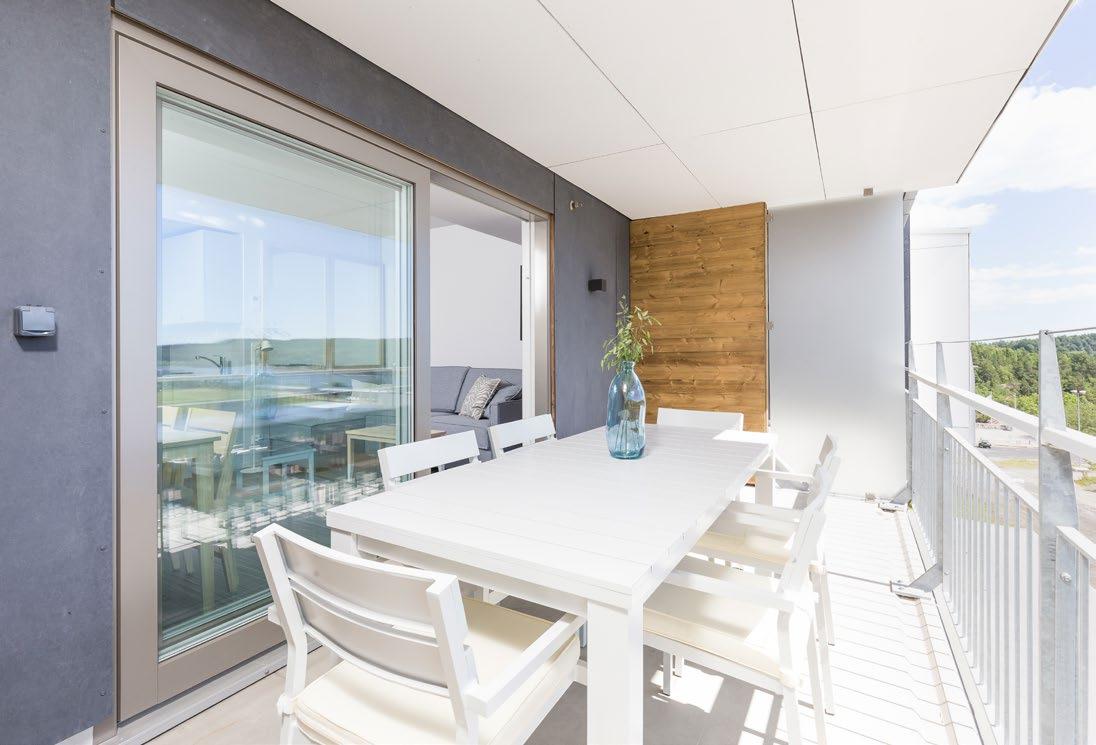 Alle Suiten haben einen offenen Balkon. Nicht im Erdgeschoss verfügbar, ohne Schlafboden und nicht behindertengerecht ausgestattet.
