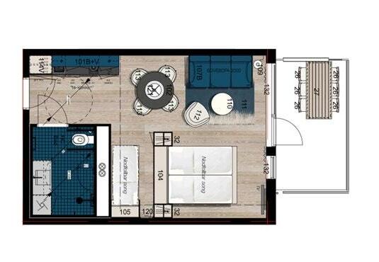 Suiten mit 26 m2 in den Langhäusern und Hochhäusern.