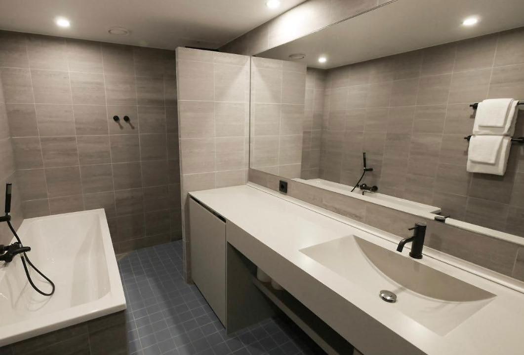 Extragroßes Badezimmer mit Dusche und Badewanne