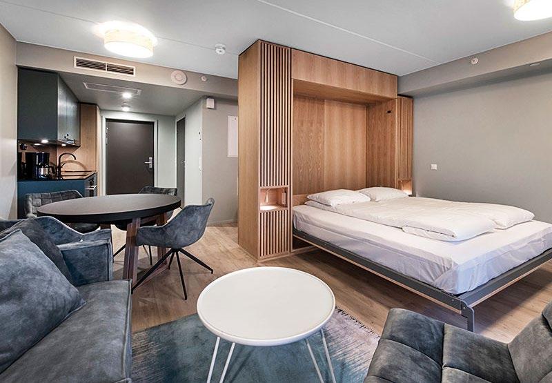 Suiten mit 36-42 m2 in den Langhäusern und Hochhäusern. Einige der Suiten sind behindertengerecht ausgestattet.