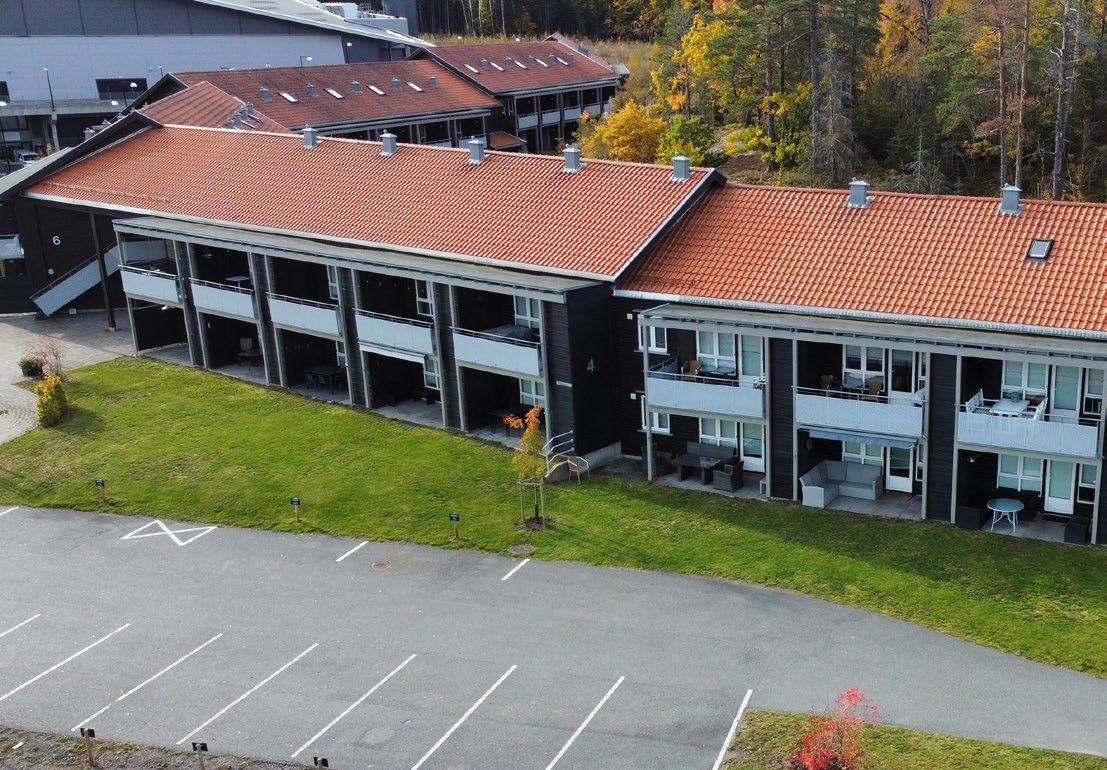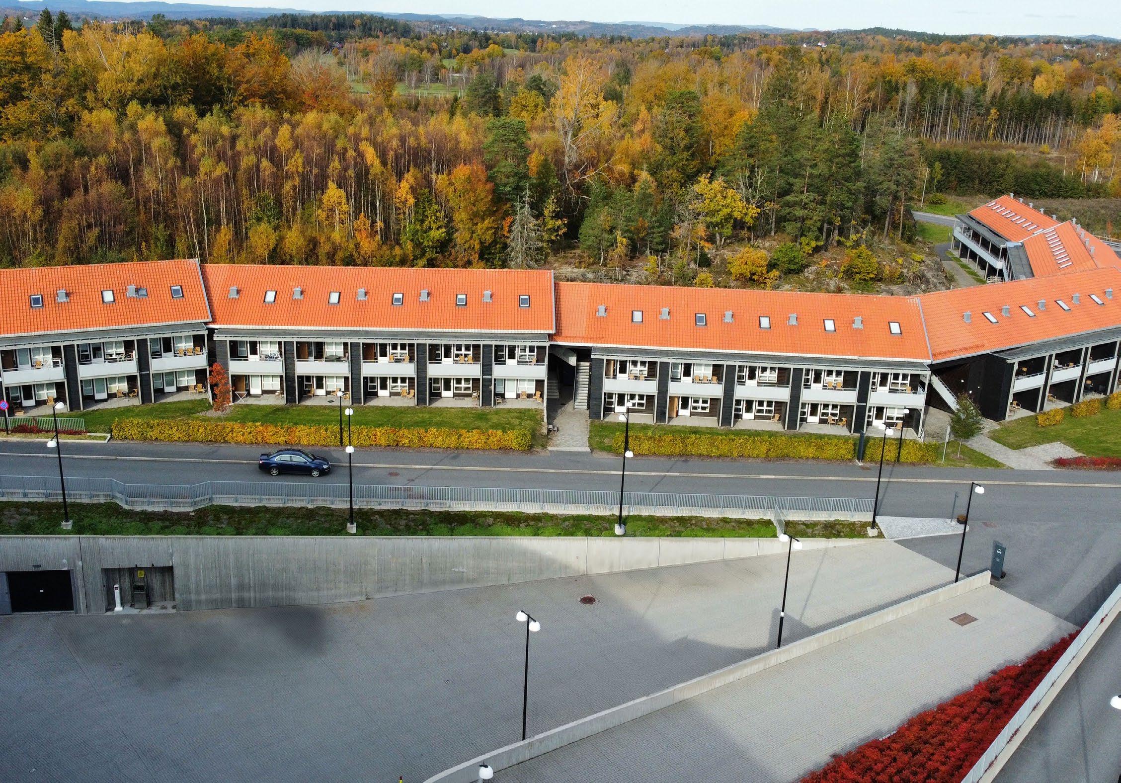 Suiter på 36-42 m2 i langhusene. Noen av suitene er HC-tilpasset.