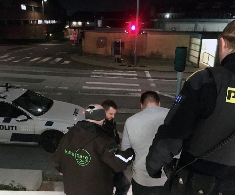 „Vi er Kirke Care. Vi er fra kirkerne.“ Vi holder øje med, at den unge mand kommer sikkert tilbage til vennerne på bodegaen.