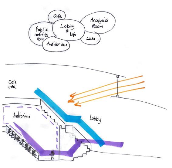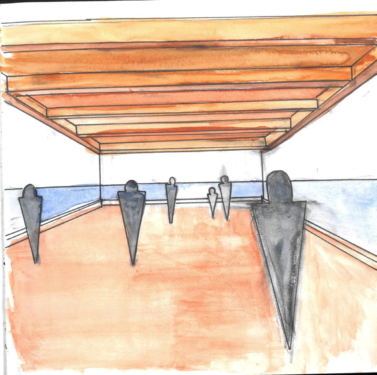 Based upon the structures of both the Pantheon & The Ctesiphon Arch (the world’s largest brick built arch), the design was reworked to accomodate such a structure. To the south of the arch the cloister that forms the circulation spaces acts as a buttress whilst the walls on the north side get thicker towards the base inorder to accomodate the forces that act upon the structure.