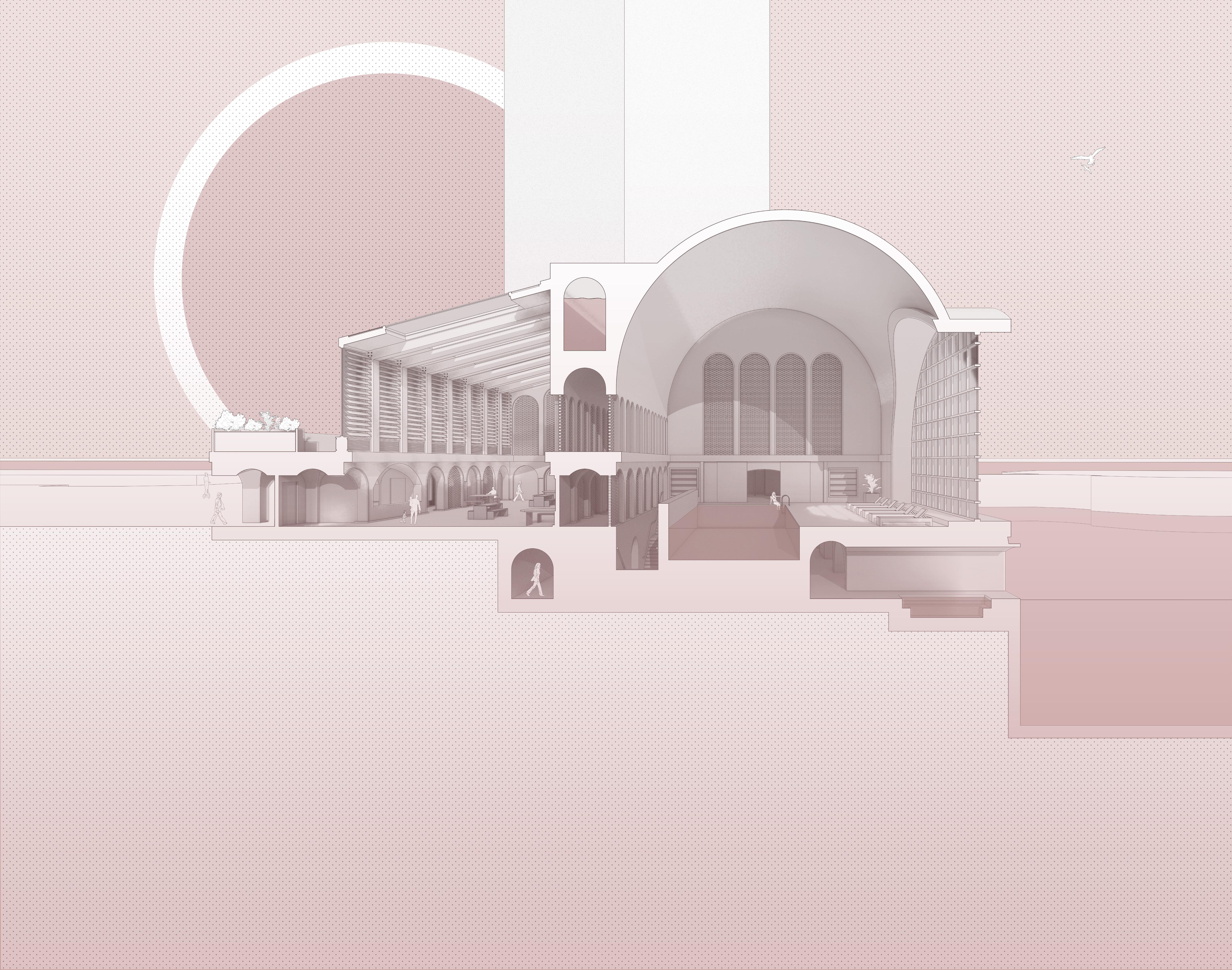 A reimagined Roman Thermae, the project revolved around reconnecting a community by working within the needs of those in the surrounding apartments. Focused on providing facilities that bring more than just the luxury of bathing, the concept delves into social interaction by experimenting with spaces that evolve to suit the needs of those it serves.