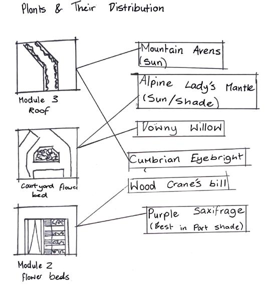 This intention for a circular economy had led to a design mentality whereby the local plant life are to play a part in the form of the building in a series of plant beds located in different environments that are dependent on sun light requirements and hardiness, with certain groups such as the arcticalpines being able to survive in the toughest conditions.