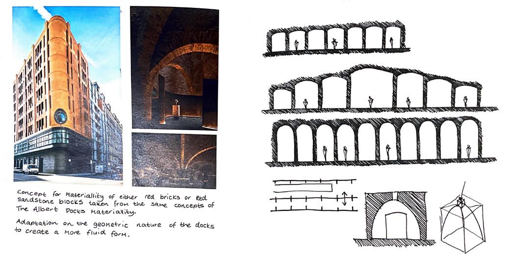 Heavily inspired by pushing the boundaries when it came to the structural limitations of brick, I looked to express the beauty of masonry structures throughout the project, with an emphasis on arches and the soft and hard boundaries that can achieved to create tension within the space.