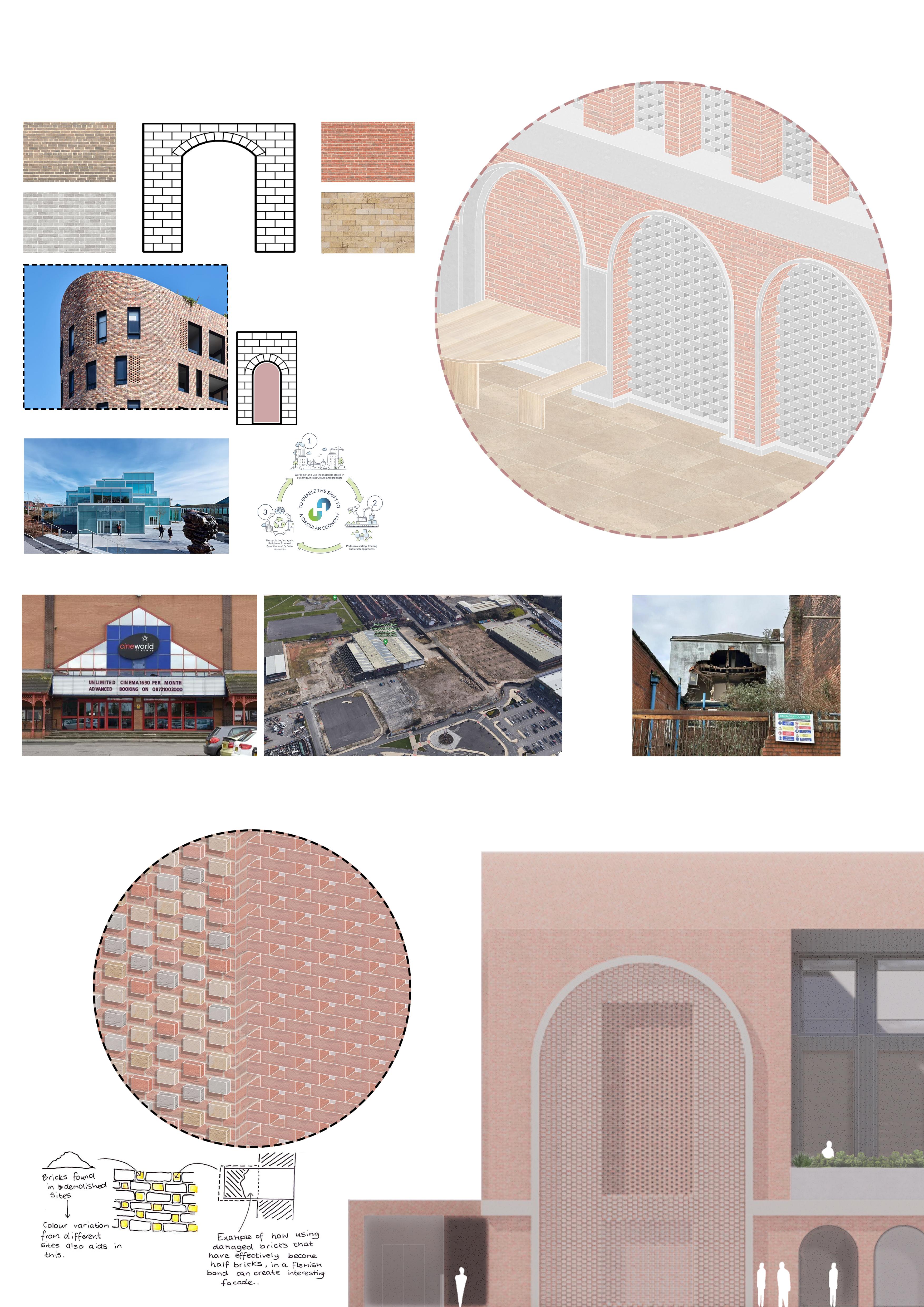 With the project being centred around the creation of brick structures, the issue of such an energy intensive material needed addressing, the solution to which is a heavy focus on urban mining. Working closely with local businesses that provide services regarding reclaimed materials aswell as others with similar intentions helps to bring the community together on multiple levels with the objective being a product that the community feels attached to. Along with this, working with groups that take more of an artistic stance on upcycling such as ‘Assemble’ the project would look to create art from unwanted materials with the proceeds then being reinvested back into the community through the building itself aswell as the workshops own inisiatives that look to engage young people in creative projects aswell as train the local population in transferable skills. Overall the idea of urban mining within the project not only tackles issues regarding embodied energy and carbon but aswell delves deeper into bringing a community together to work together and contribute to a project aimed at benefiting those within local population, alot of which are young people at Liverpool’s nearby Universities.