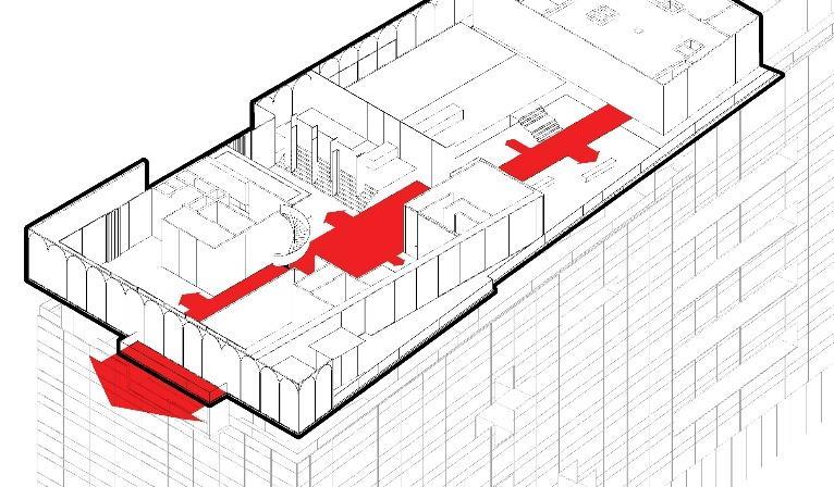 The water reservoirs within the areas gather rainwater from the waterfalls, while the courtyards function as a response to the local climate