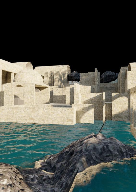It combines the solidity of stone with the fluidity of water, embodying the project's core concept of merging architecture with the movement patterns of water and people Its design represents the profound dialogue between people and water, with the stone labyrinth serving as a conduit for this quiet conversation