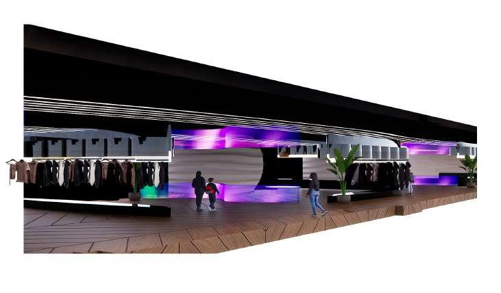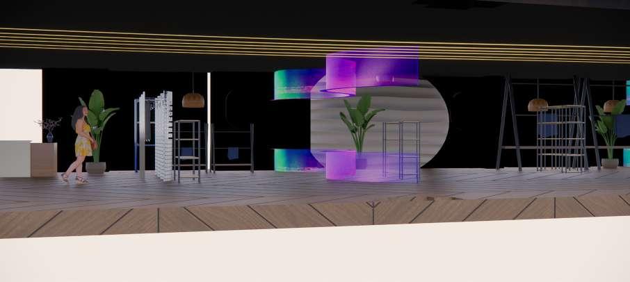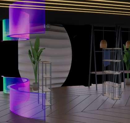 The retail space is designed using mainly black and gold colours for the walls with a glass curved panel that divides the space. The glass panels will have the aurora Borealis colours (image 1) which will be eye-catching and fun for teenagers. The floor internally will be designed with light wood chevron to give a spacious zig-zag arrangement which flows from one side to the other. The design will finish with a wavy plaster effect on the walls to give a 3-dimensional illusion and an elegant touch.