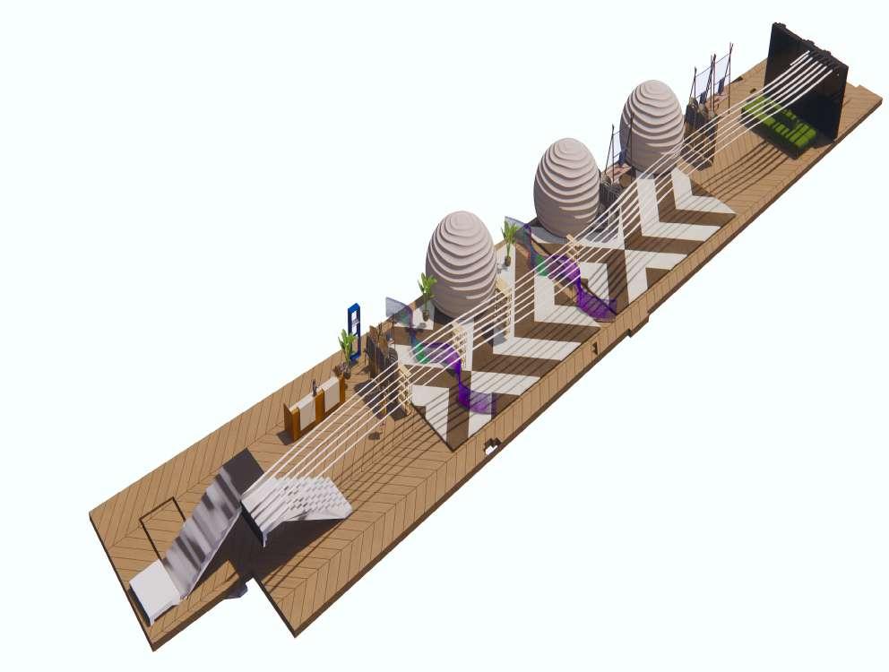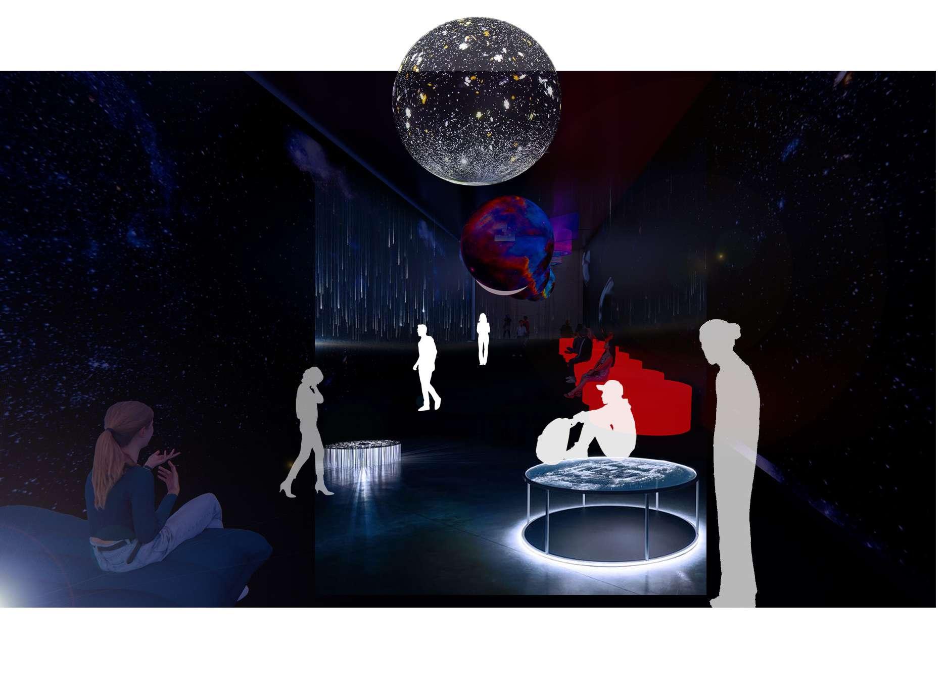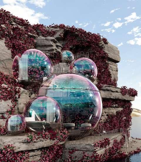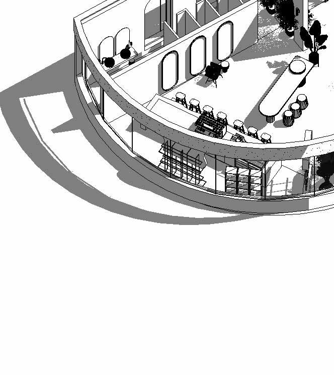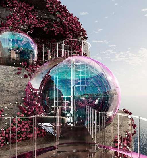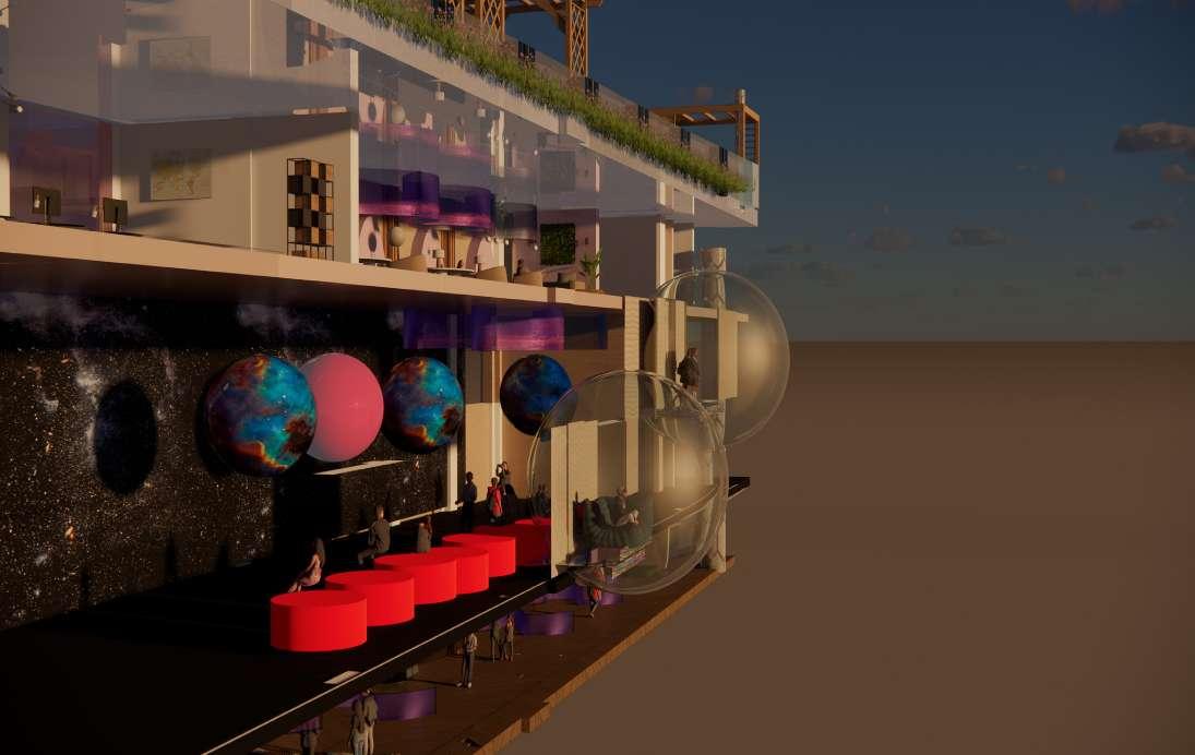 Inspired by the Bubble house representing the idea of a bubble soap covered by pink blossom, the spherical forms create sensuous interior spaces when they intersect, creating six bubbles with different interior spaces surrounded by transparent glass, where you can feel and see nature in every view. Taking into consideration my concept, started to think on how the local teenager would be attracted to come inside.