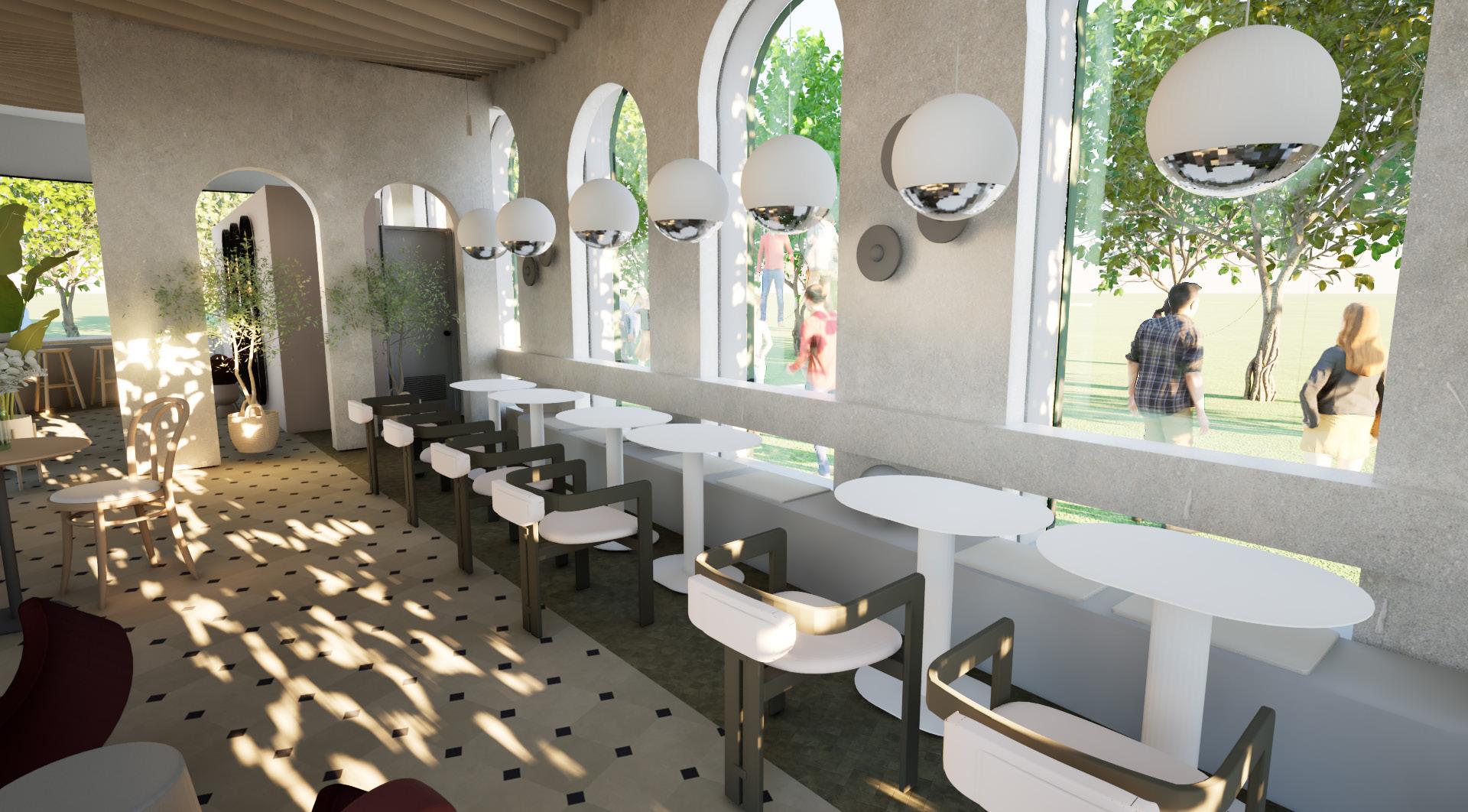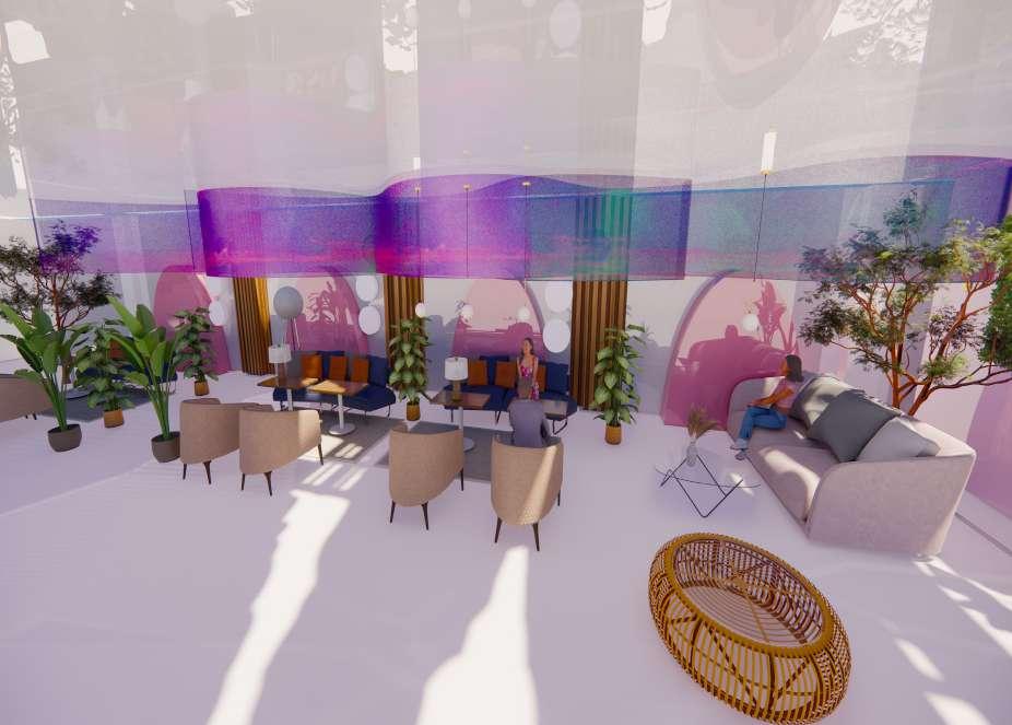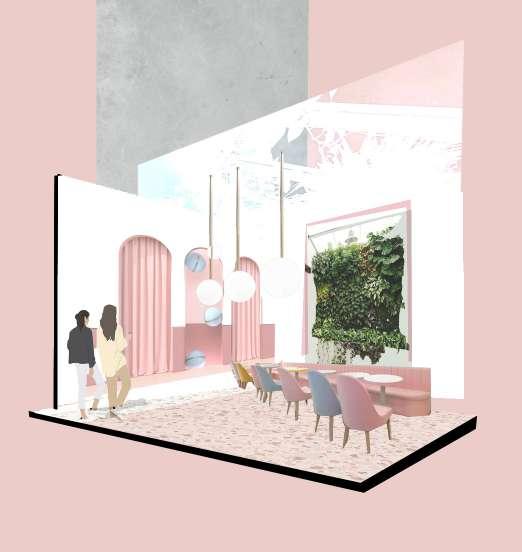 The cafe will be benefit from a wall system plant and wave designed sculpture inspired from the Aurora borealis biophilia& vibrants colours was a really important concept for the wellness of the teenager who lives in London, human have desire to connect with nature due the increase of urbanisation and lack of green and spending so much time indoor this is been a challenge even for the health organisation, this is way I have actively chosen to incorporate it in my interior, biophilia improving the health of the human being, incorporate biophilic design improves aesthetic. In addition to the design choose to add to the Cafe, Pink Arches to create carachter to the space and enhance elegance.
