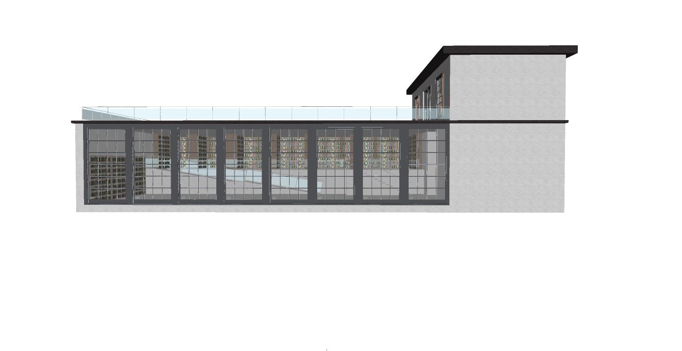 The library is a sunken structure, with a deck top viewing facility for viewing and for students to work. The interior of the library reading space is double height to create a soundscape that stands out.