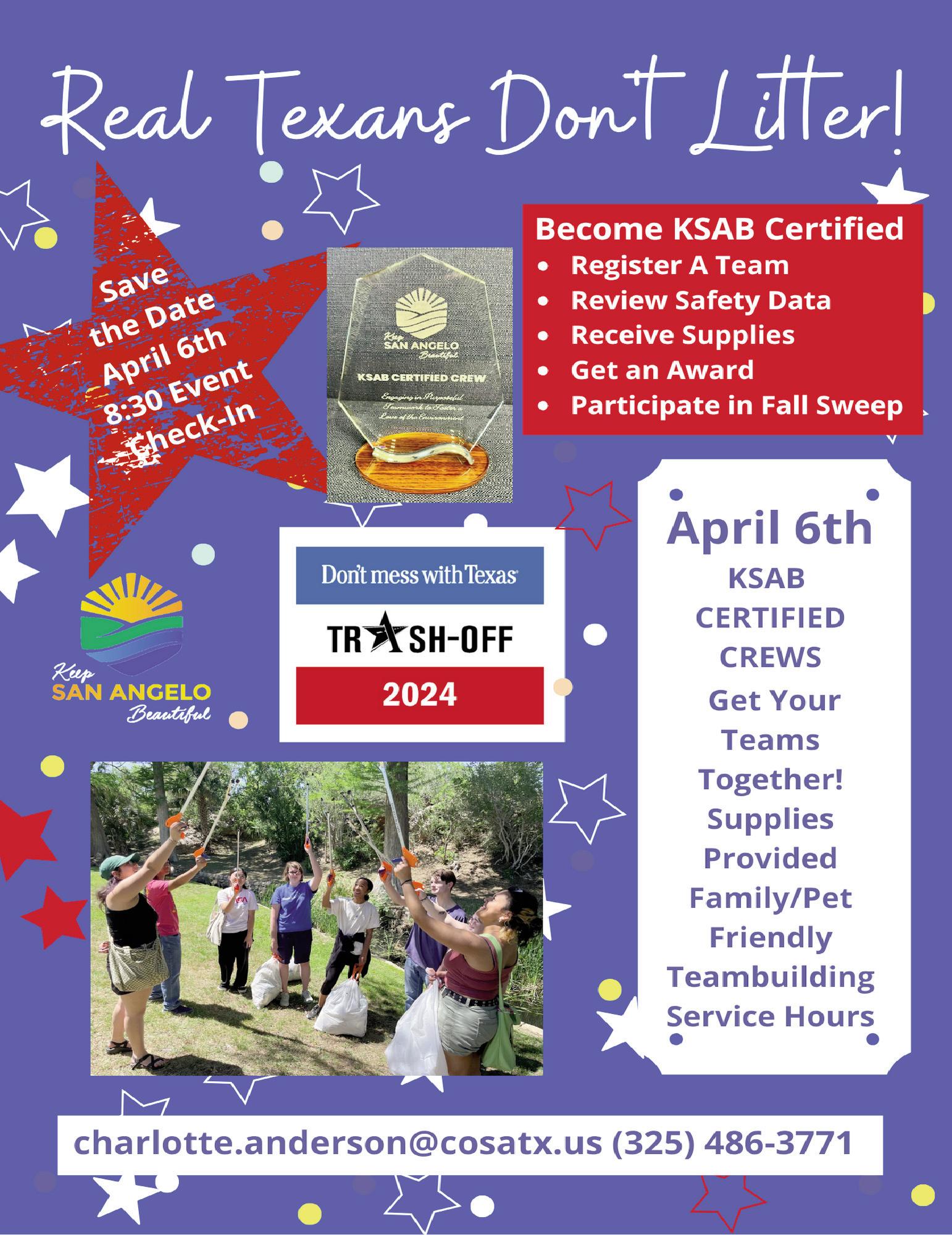 Register a team today – charlotte.anderson@cosatx.us or (325) 486-3771