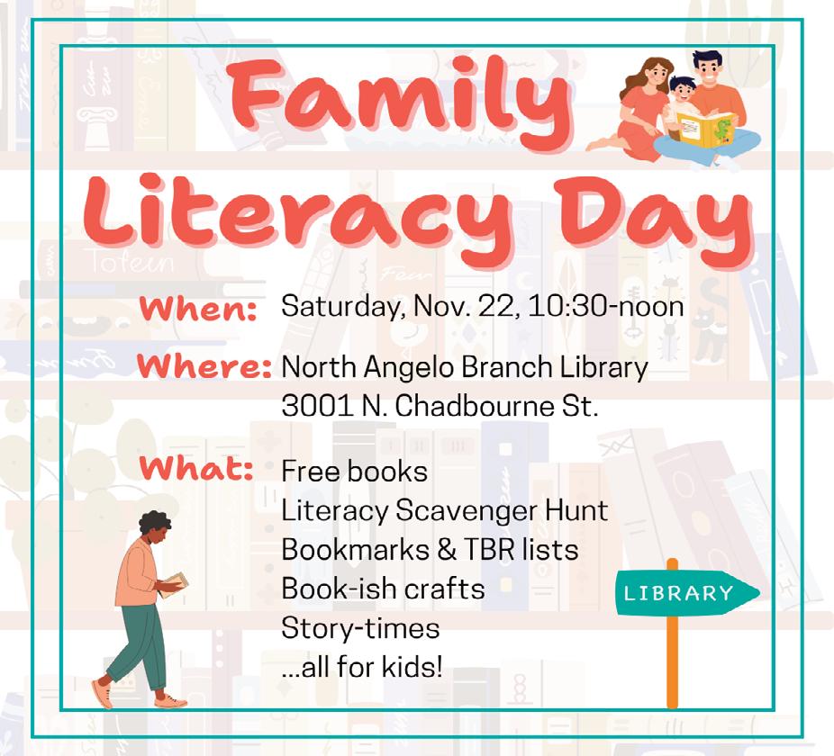 The sale will be held in the basement of Stephens Central Library at Irving and Beauregard. The sale begins at 9:00 and ends at 1:00. Tell them you saw it in San Angelo Family Magazine!!!