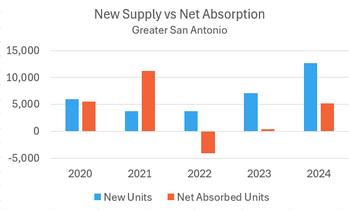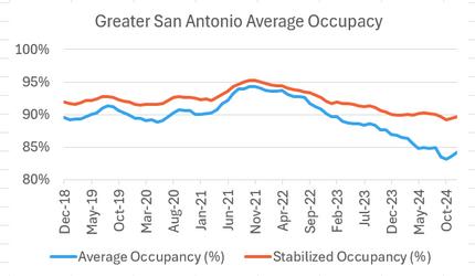 2024wasanotherchallengingyearforGreaterSanAntonio multifamily Newsupplycontinuedtofaroutstripapartment demand,averageoccupancyfelltoalevelnotseeninmore thanadecade,andrentgrowthremainedelusiveformuchof themarket