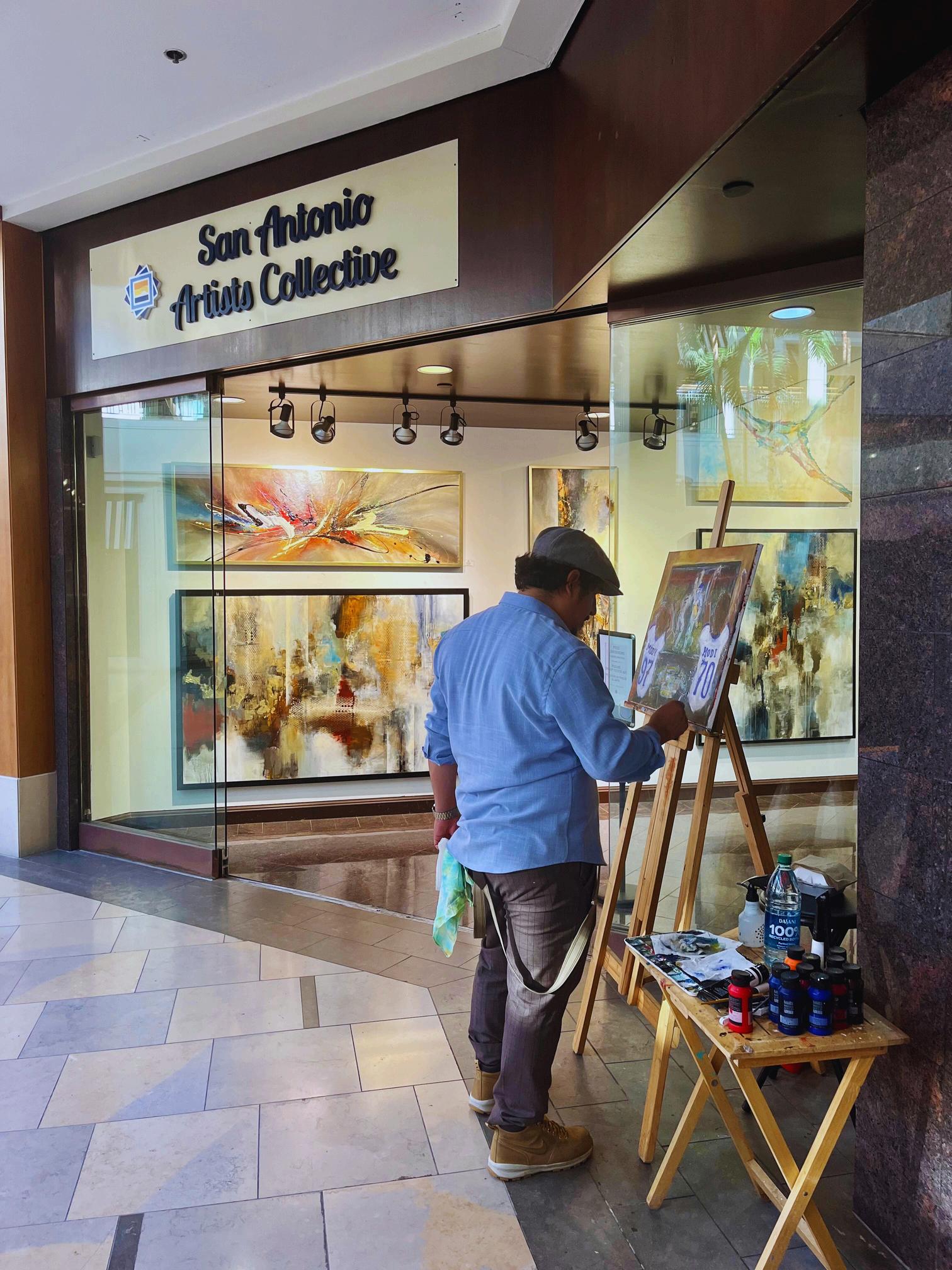 Take advantage of the vibrant live painting sessions at the San Antonio Artists Collective in NorthStarMallnexttoSaksFifthAvenue.Visitus on weekends to witness artists Robert Garza or Joao Quiroz in action as they bring their masterpiecestolife.It'sauniqueopportunityto ask questions, engage in conversations, and even arrange a custom painting consultation Plus, locals can enjoy the added benefit of free delivery, personally handled by the artist who createdtheirpiece,makingtheexperienceeven more special. Immerse yourself in the creativity andtalentofSanAntonio'sfinestartists!