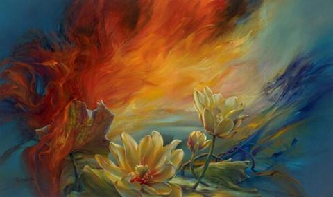A: It wasn't so much a mundane day event; it was more like a daydream memory I remember when I was very young, probably in my mid 20s, I had this vivid dream that I lived in a world made of glass where I could see through different layers. I could see the right angles and angle cuts of glass, even the reflection It was interesting, and I remember walking through this forest of glass and coming upon this lake. The water was made of glass as well, but it also reflected the moonlight, and when I looked up into the sky, it wasn't so much the Van Gogh starry night, but for me, it was more of looking at a jeweled facetted night sky - the stars seemingly reflecting and refracting. I remember waking up and knowing it was a very intense image. That's when I decided to incorporate that style into my artwork