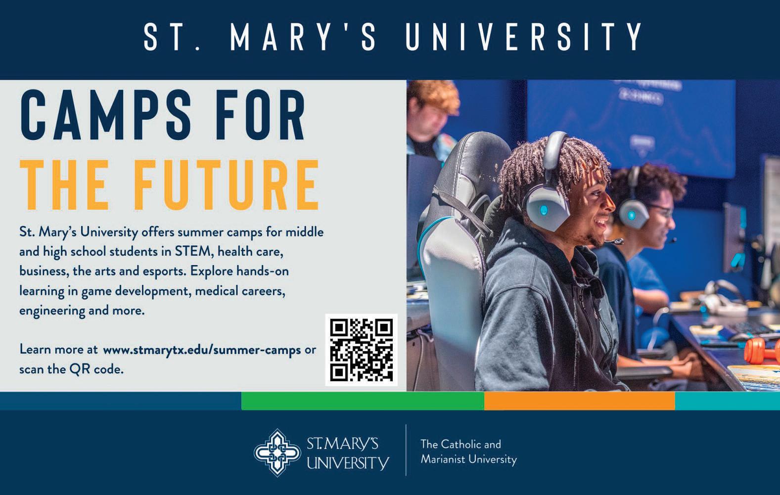 St. Mary’s University,the oldest Catholicuniversity in Texas, offers avariety of summercamps designed to engage and inspire studentsinacademics,the arts sports and emerging fields.