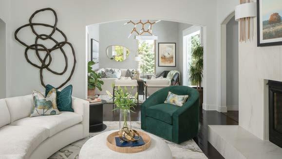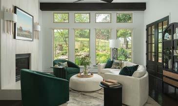 natural surroundings, we decided to blend their indoor space with the outdoors in an elegant and fresh way. Blue, green, cream, and white was the color palette of choice with accents of black to provide a striking contrast.