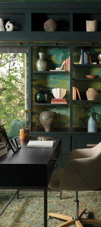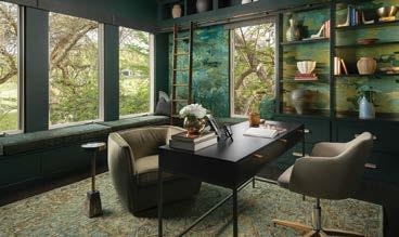 so important to us, so this was a no-brainer. Green was the color and seeing all the trees outside the windows made it feel like a treehouse. There were many custom elements in this room like the cabinetry, pillows, and (of course) Italian cowhide mural of the Amalfi Coast.