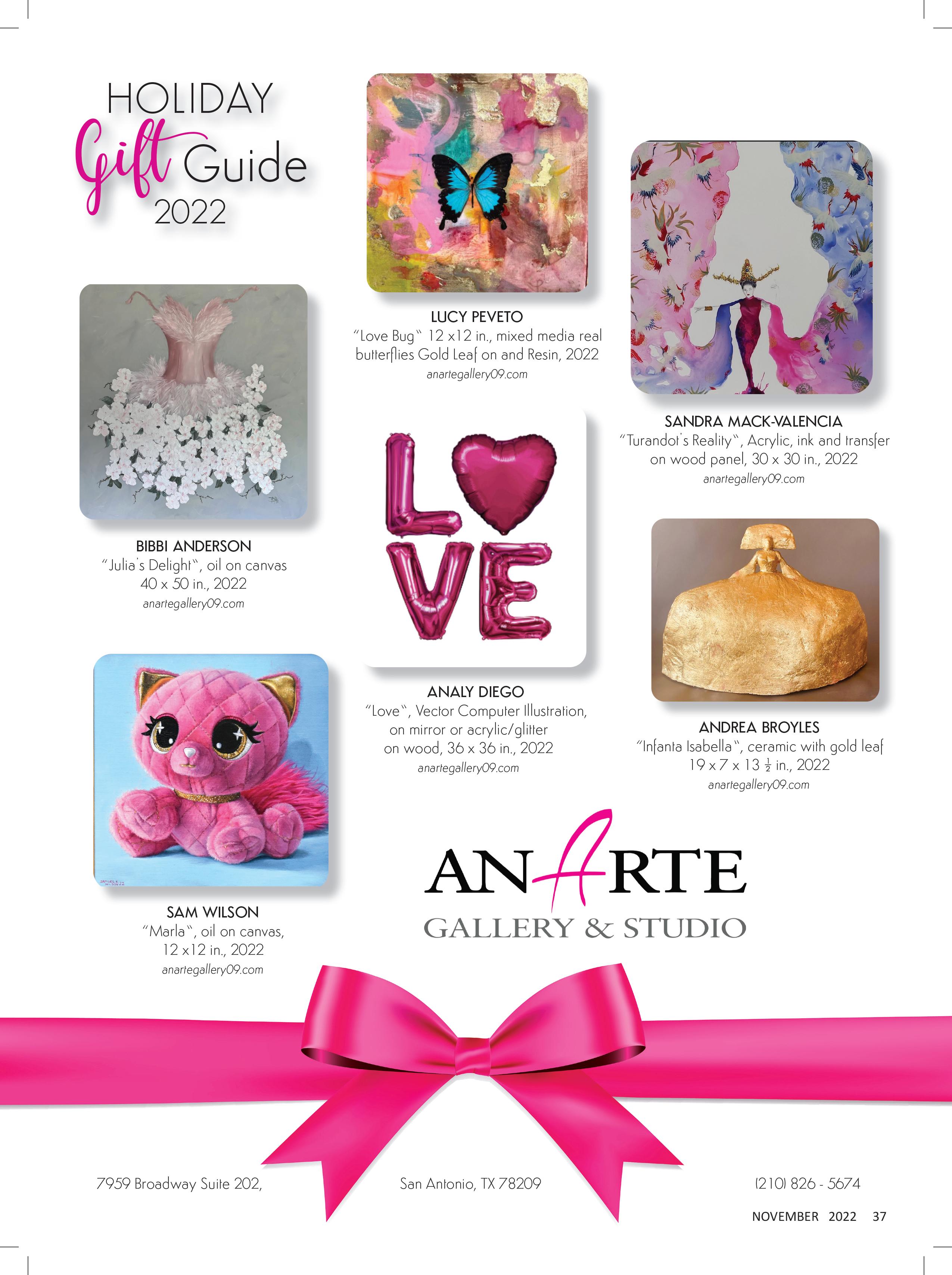 78209 MAGAZINE is published monthly by Las Tres Muchachas Enterprises (Publisher). Reproduction in any manner in whole or part is prohibited without the express written consent of the Publisher. Material contained herein does not necessarily reflect the opinion of the publisher or its staff. 78209 MAGAZINE reserves the right to edit all materials for clarity and space and assumes no responsibility for accuracy, errors or omissions. 78209 MAGAZINE does not knowingly accept false or misleading advertisements or editorial, nor does the Publisher assume responsibility should such advertising or editorial appear. Articles and photographs are welcome and may be submitted to our offices to be used subject to the discretion and review of the Publisher. All real estate advertising is subject to the Federal Fair Housing Act of 1968, which makes it illegal to advertise “any preference limitation or discrimination based on race, color, religion, sex, handicap, familial status or national origin, or an intention to make such preference, limitation or discrimination.” Printed in the U.S.A.