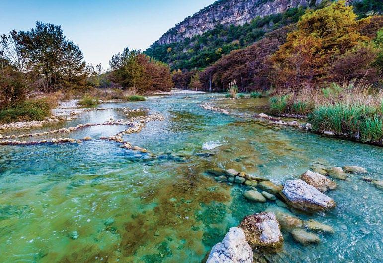 The trail has numerous access points, including several that allow users to move in and out of the historic downtown and famed Hill Country Mile. Past downtown, the trail runs along the entirety of River Road Park. Further still, at the confluence of Cibolo and Currey Creeks, a 150-foot pedestrian bridge nestled amongst the trees offers a birds-eye view of a refreshing waterfall and crystal clear flowing stream just before City Park.