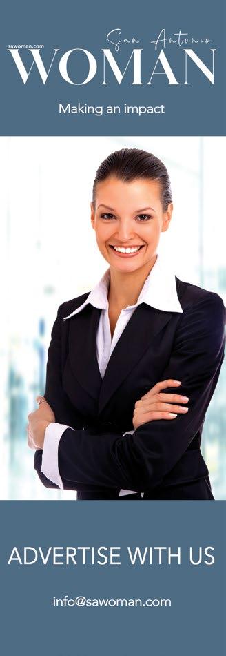 SAN ANTONIO (210) 805-0171 BOERNE (210) 739-1818 AUSTIN (512) 549-2246 EMPOWERING WOMEN 554255_SATXWomensMag_3pt375x9pt875.indd 2 2/29/24 4:45 PM March/April 2024 85