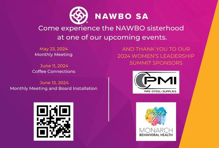 May/June 2024 CONNIE GONZALEZ Leading Transformation With Passion and Enthusiasm BROOKS SPECIAL SECTION PERFORMING ARTS LEADERS SummerTravel sawoman.com