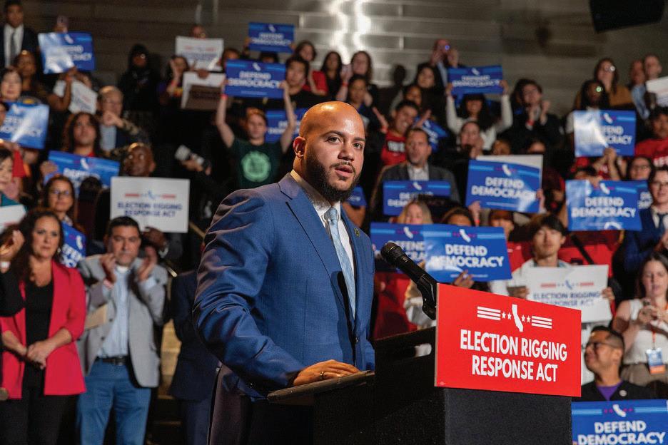 California Governor Gavin Newsom holds a press conference to discuss his plan for a special election to redraw congressional maps in response to efforts in Texas. Assemblymember Isaac Bryan (D-Los Angeles), vice chair of the California Legislative Black Caucus, speaks on Aug. 14. CBM photo by Maxim Elramsisy.