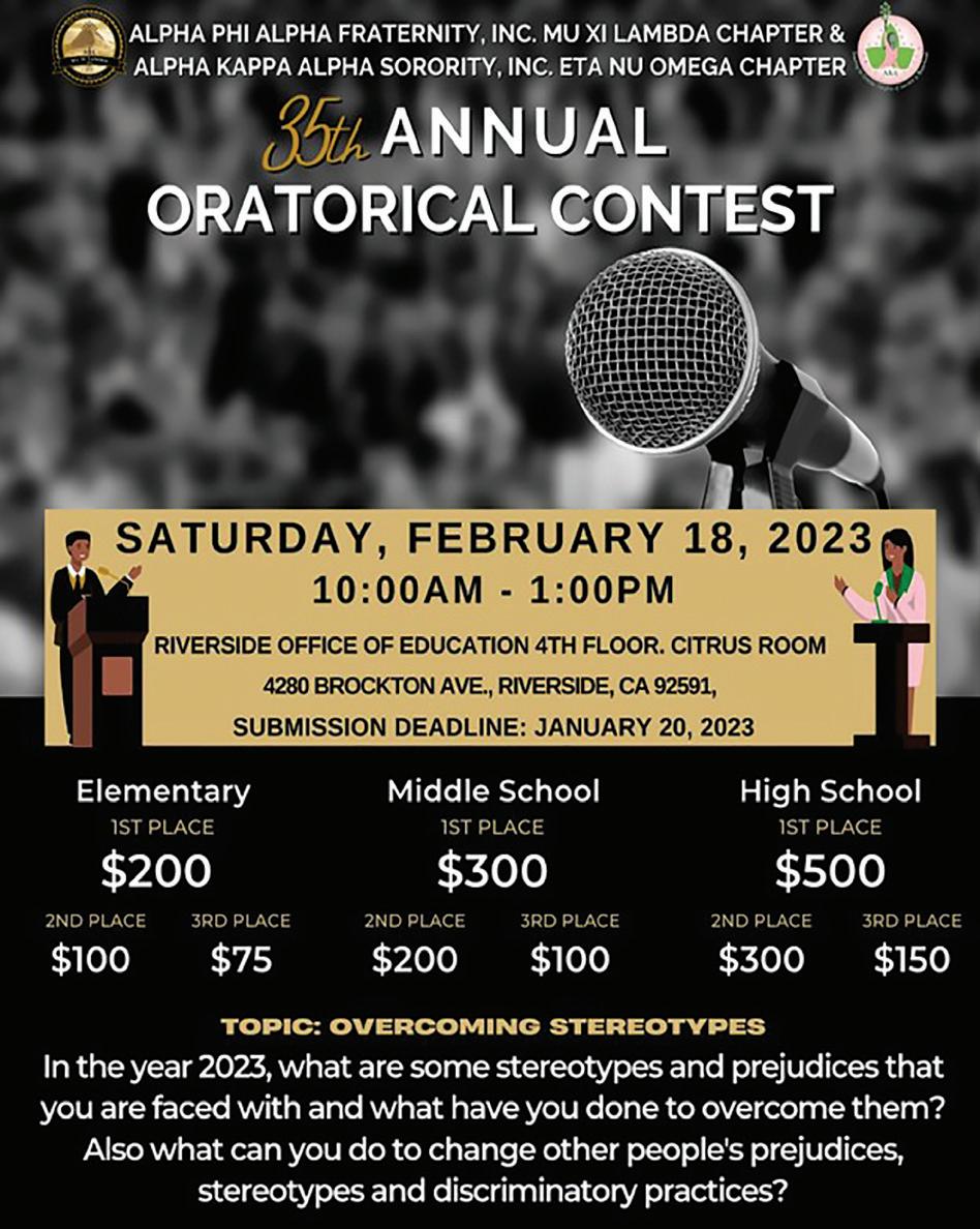 On Sunday, January 8, 2023, at the Community Youth Center in San Bernardino at the Social Lites, Inc. Beautillion meeting, former Sir Knight of Beautillion, Dr. Charles Brown of Alpha Phi Alpha Fraternity. Inc., Mu Xi Lambda Chapter along with member Dar’rell Jones and Twillea Evans-Carthen of Alpha Kappa Alpha Sorority, Inc., Eta Nu Omega Chapter, and member of Social Lites, Inc. presented information on the upcoming 35th Annual Oratorical Contest to participants of the Social Lites, Inc. Beautillion Program.