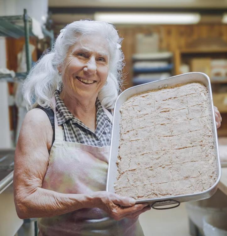 Baker Bernie Miller has been working throughout the year to pull these recipes together and to reduce the amounts so you can bake cookies, for example, in a batch of 36 rather than 500. Of course, those of us here yearround have accepted the challenging job of taste-testing the smaller batch cookies to make sure they are still delicious. It has been grueling work, but someone had to do it.