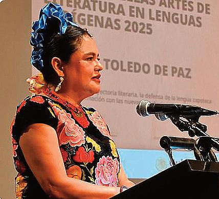 La directora general del INBAL también subrayó que, además de poeta, Natalia Toledo es diseñadora y promotora cultural. Enfatizó el impacto de su obra: «Su obra ha sido decisiva para visibilizar la lengua y la cultura zapoteca en la literatura contemporánea mexicana, y se destaca por la sensibilidad con la que conecta con sus raíces y la profun- didad de sus imágenes poéticas».
