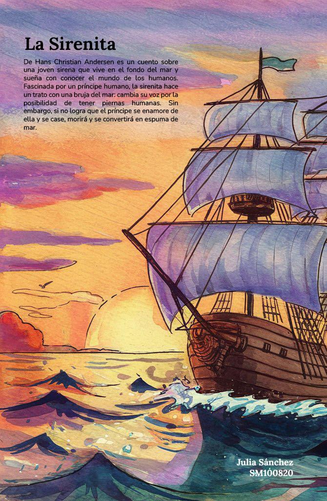 - ¡Bien, ya puedes salir a respirar el aire y ver el cielo! ¡Pero recuerda que el mundo de arriba no es el nuestro, sólo podemos admirarlo! Somos hijos del mar y no tenemos alma como los hombres. Sé prudente y no te acerques a ellos. ¡Sólo te traerían desgracias!