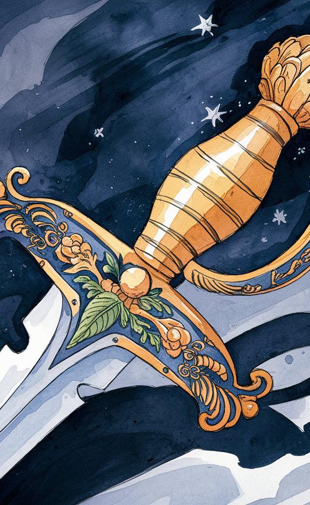 - ¡Sirenita! ¡Somos nosotras, tus hermanas! ¡Mira! ¿Ves este puñal? Es un puñal mágico que hemos obtenido de la bruja a cambio de nuestros cabellos. ¡Tómalo y, antes de que amanezca, mata al príncipe! Si lo haces, podrás volver a ser una sirenita como antes y olvidarás todas tus penas.